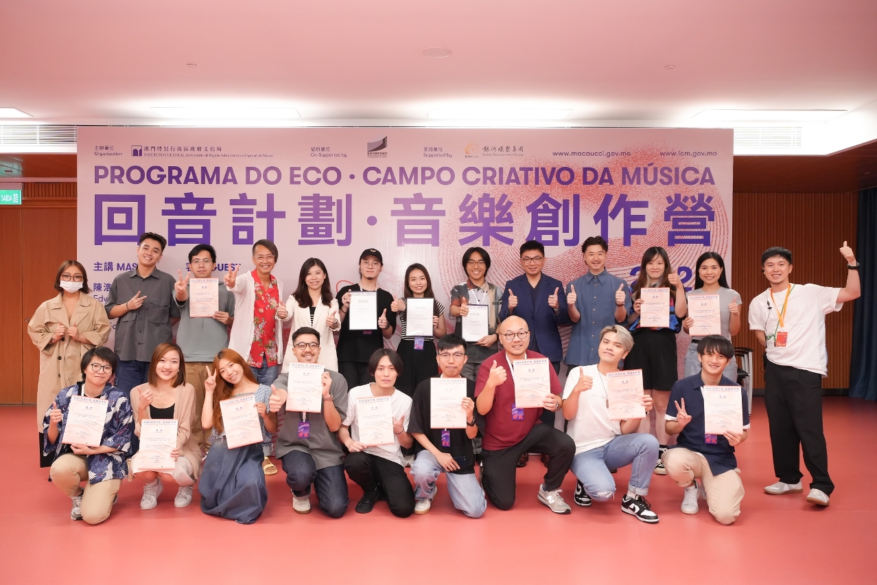 Organizado pelo Instituto Cultural (IC), o “Programa do Eco ‧ Campo Criativo da Composição de Música” terminou com êxito, tendo o “Prémio de Melhor Equipa” sido atribuído aos formandos Wu Cheng Lon, Mak Keng Chi e Lio Ka Chon. No final do programa, o Chefe do Departamento de Promoção das Indústrias Culturais e Criativas do Instituto Cultural, Ho Hong Pan, a Vice-Presidente Adjunta das Relações Públicas do Galaxy Entertainment Group, Christina Sin, assim como os instrutores principais, Edward Chan e Chow Yiu Fai, estiveram presentes para entregar o certificado de participação e o diploma aos formandos, assim como o prémio monetário patrocinado pelo Galaxy Entertainment Group, como forma de incentivo.