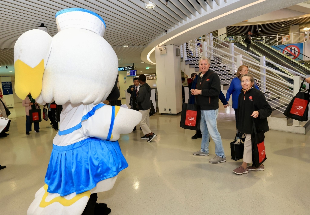 A DST organizou a deslocação da mascote do turismo de Macau “Mak Mak” ao Terminal Marítimo de Passageiros do Porto Exterior e a oferta de lembranças para dar as boas-vindas a perto de 90 visitantes internacionais de cruzeiros oriundos dos Estados Unidos da América, Suíça, Canadá, Austrália, Inglaterra, Turquia e Laos, que chegaram a Macau via Hong Kong, para divulgar a cultura de hospitalidade calorosa e a imagem como cidade de cortesia de Macau. Os visitantes irão visitar em excursão o Centro Histórico de Macau classificado como património mundial pela UNESCO, o Museu de Macau, a Torre de Macau, instalações dos grandes resorts, bem como apreciar a gastronomia de Macau.