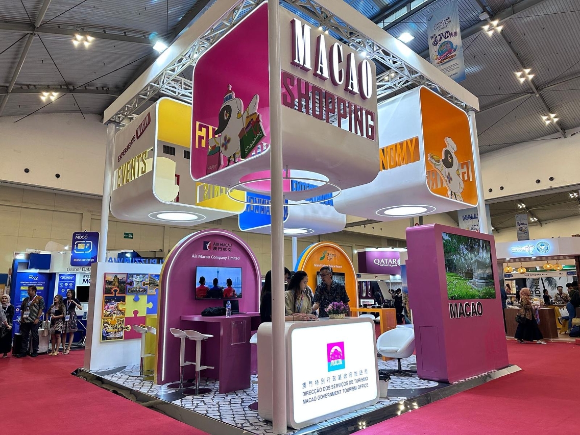 旅游局组织澳门综合度假休闲企业及航空公司代表参展,并在现场设置达36平方米的“澳门馆”展位,通过缤纷多彩的设计和互动游戏推广澳门世界遗产、盛事活动、美食和休闲旅游等元素,展示澳门充满活力的氛围和“旅游+”魅力。