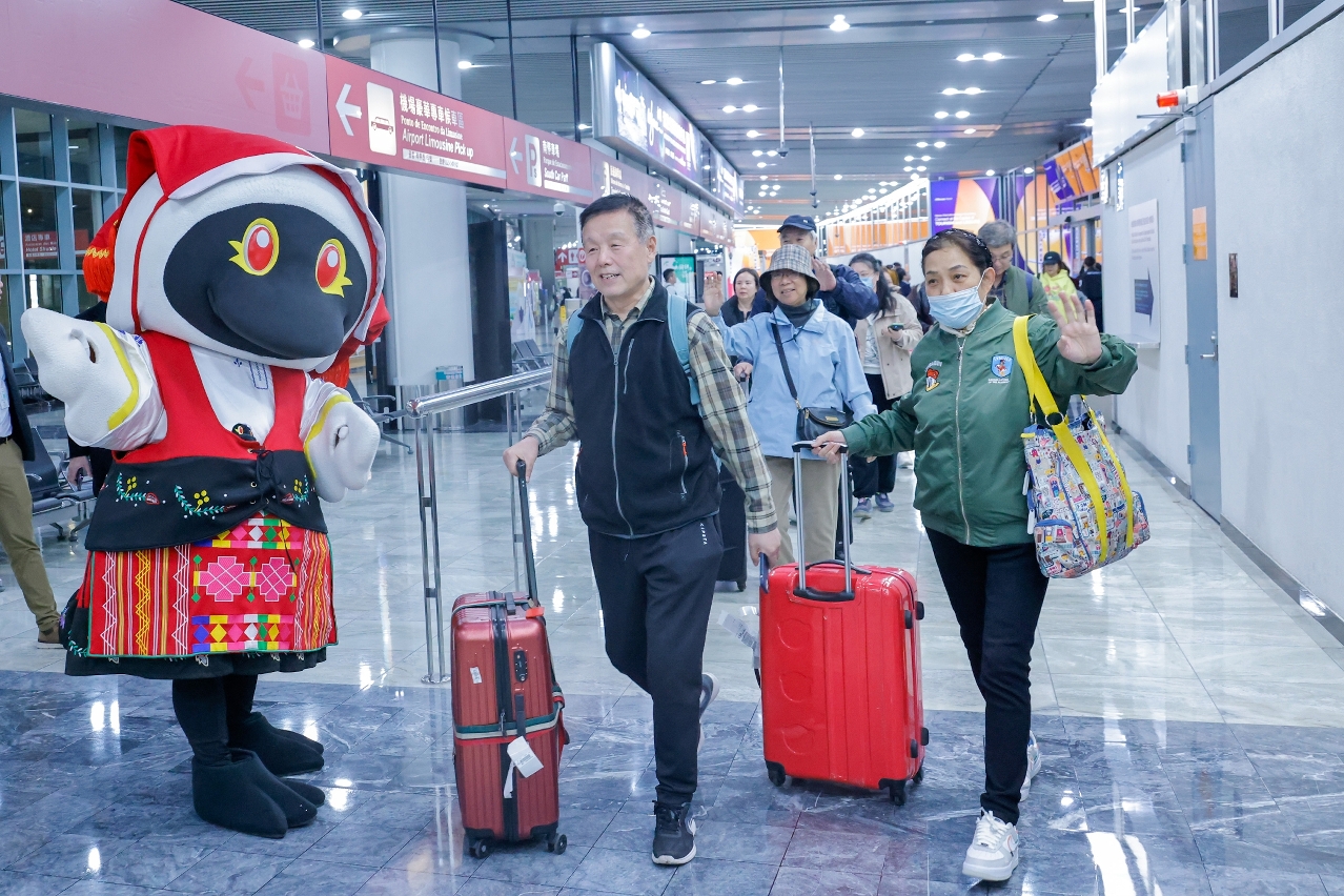 旅游局安排澳门旅游吉祥物“麦麦”到澳门国际机场欢迎来自西安的旅客,并向旅客致送纪念品,提升旅客访澳体验,宣传澳门旅游形象,展现澳门热情好客的一面。