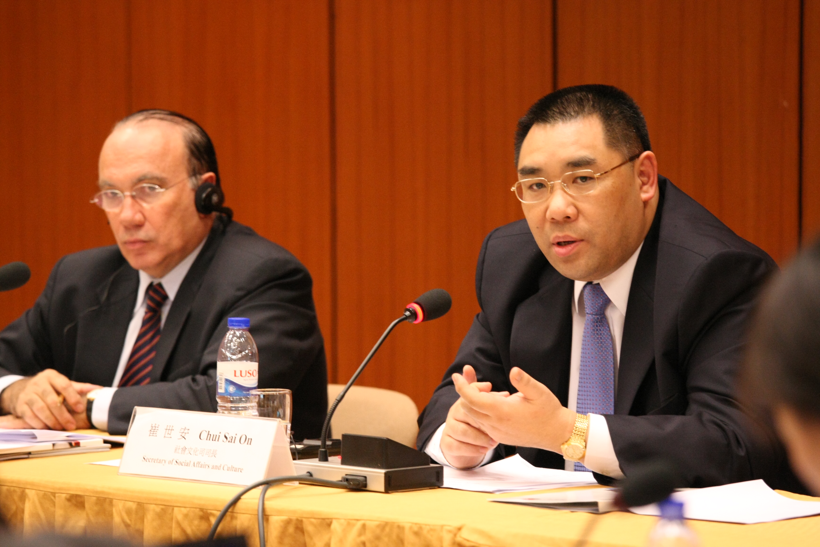 境外旅遊危機處理辦公室首次會議在旅遊活動中心舉行,社會文化司司長崔世安以辦公室主席身份主持會議。