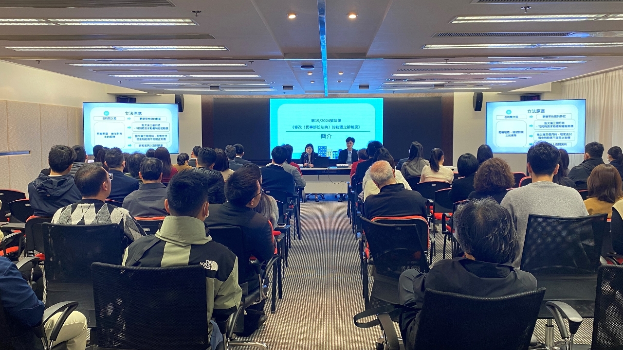 第19/2024號法律《修改〈民事訴訟法典〉的勒遷之訴制度》明(1日)生效,為加強普法宣傳,法務局早前聯同多個基層社團、商會、業界團體等舉辦九場講解會,逾五百名來自不同階層人士、社區前線工作人員及地產中介人等參加。此外,法務局每月均舉辦“新勒遷制度”社區講座,歡迎居民透過一戶通“活動報名”頁面或致電87957186報名參加。