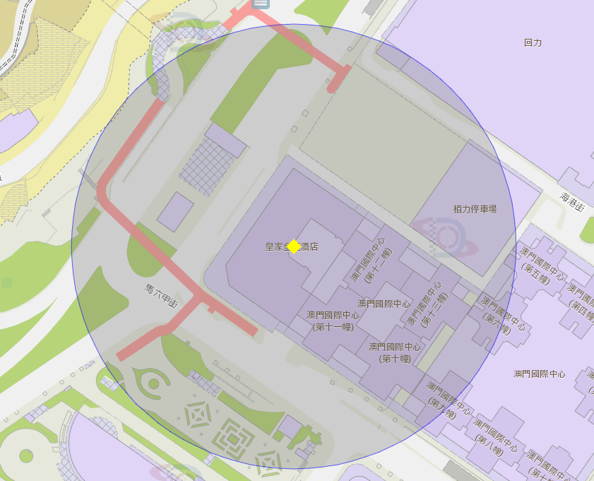• 皇家金堡酒店附近風險區域100米半徑範圍