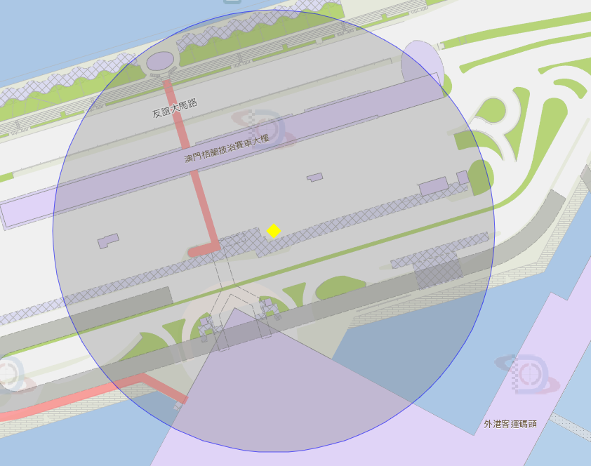 • 港澳碼頭穿梭巴士站附近風險區域100米半徑範圍