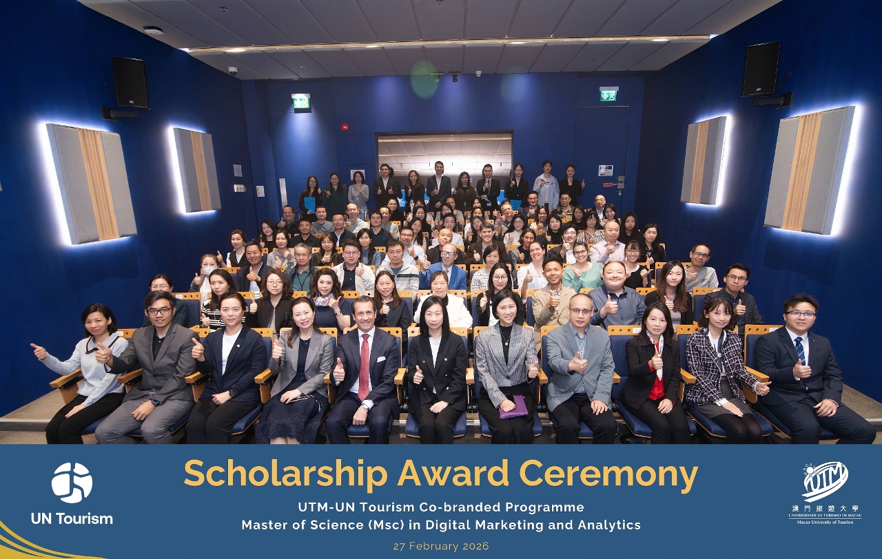 2月27日,澳門旅遊大學與聯合國世界旅遊組織在氹仔校區合辦獎學金頒贈儀式,由聯合國世界旅遊組織創新、教育和投資部主任安東尼奧‧洛佩斯德阿維拉(Antonio López de Ávila),以及澳門旅遊大學校長黃竹君共同主禮,表彰首位獲頒“數碼營銷與分析理學碩士”合作課程獎學金的優秀學生。