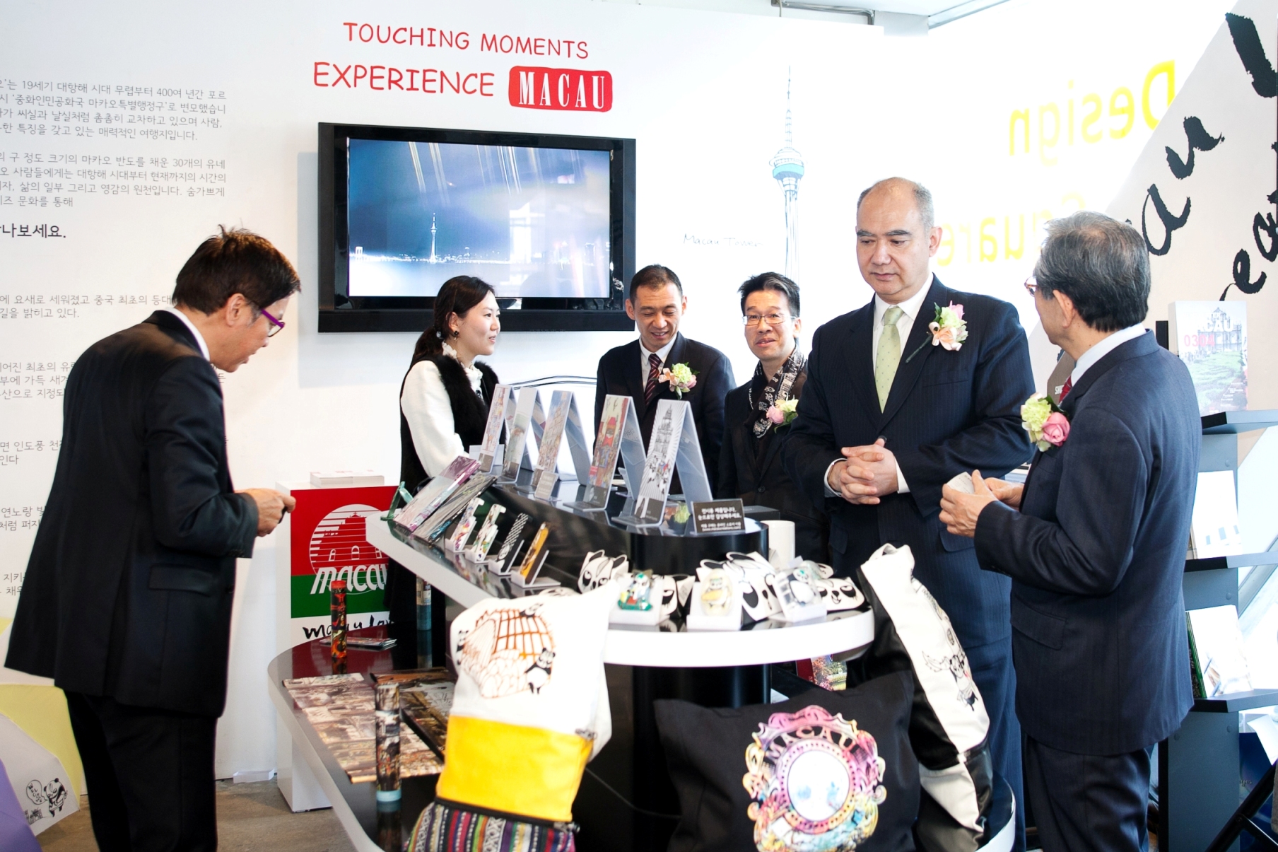 The exhibition "Macau Creations Loves Pop-up Gallery" inaugurated yesterday (March 19) in the modern complex Sang Sang Madang, specially designed to support creative industries, will be open to the public for two weeks. Participated in the opening ceremony the Deputy Director of MGTO, the Creative Director of Macau Creations, Wilson Lam, the General Manager of Air Macau Korea Branch Office, Wang Qing, along with representatives from several South Korean travel agencies.