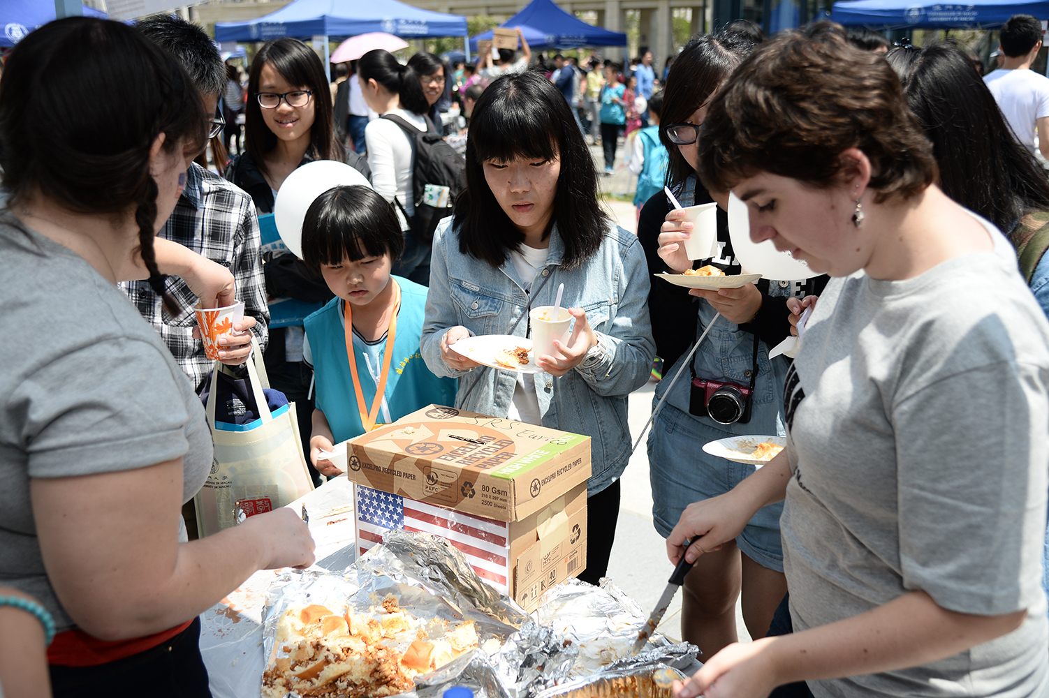 The University of Macau (UM) today held an Open Day on the new campus, attracting more than 8,000 people. This is UM’s first Open Day held on the new campus. Many middle school students and their parents visited the various faculties and residential colleges, where they got a taste of UM students’ campus lives and inquired after courses that interested them. Some people came with their families to sample food from around the world at the International Food Festival and watched student performances.