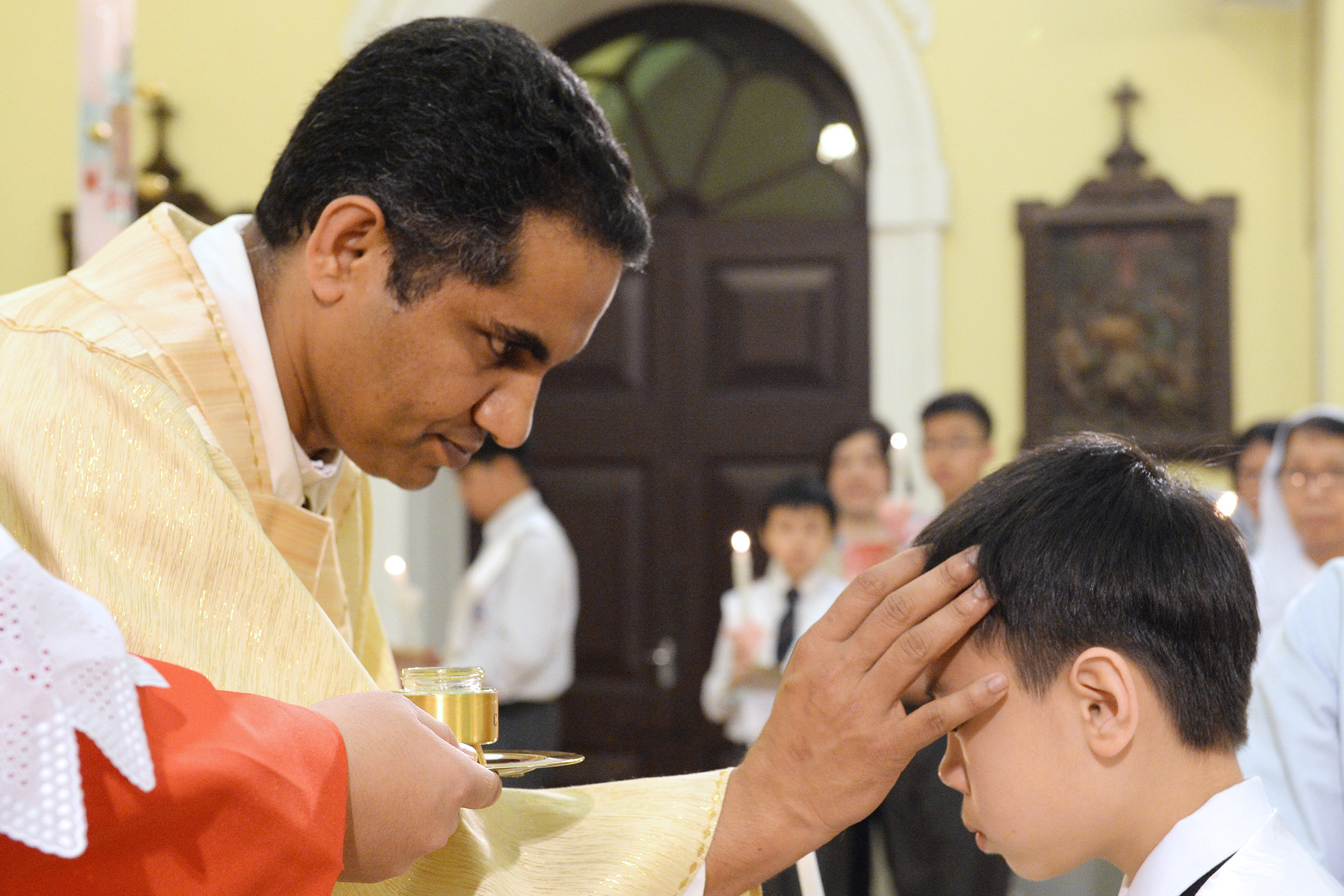 “Baptism”, is the work of eight photographs taken by the Bureau’s photographer Cheong Ka Ian. The sacrament, often called the “door of the Church”, is to clean the taint of original sin.
