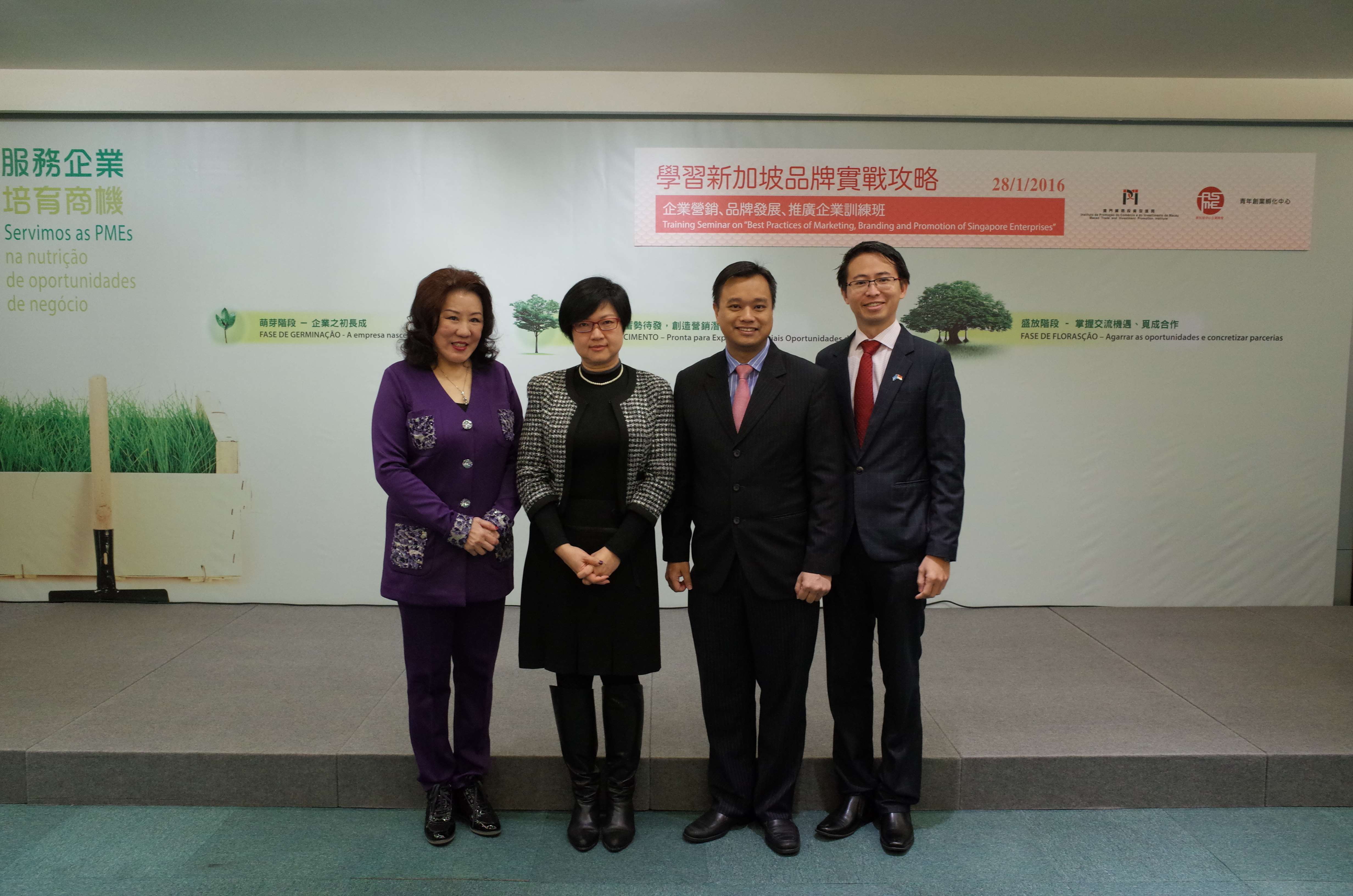 Macao Trade and Investment Promotion Institute (IPIM) collaborated with the Association of Small & Medium Enterprises, Singapore (hereinafter referred to as ASME Singapore) and Young Entrepreneur Incubation Centre to organise a training seminar on the "Best Practices of Marketing, Branding and Promotion of Singapore Enterprises” for Macao SMEs at IPIM’s Macao Business Support Centre on 28 January, with the aim of encouraging local SMEs and young entrepreneurs to learn about the successful business strategies of Singapore enterprises and hence improve their competitiveness. The seminar attracted the participation of over 130 representatives from business associations, SMEs and new enterprises from different sectors.