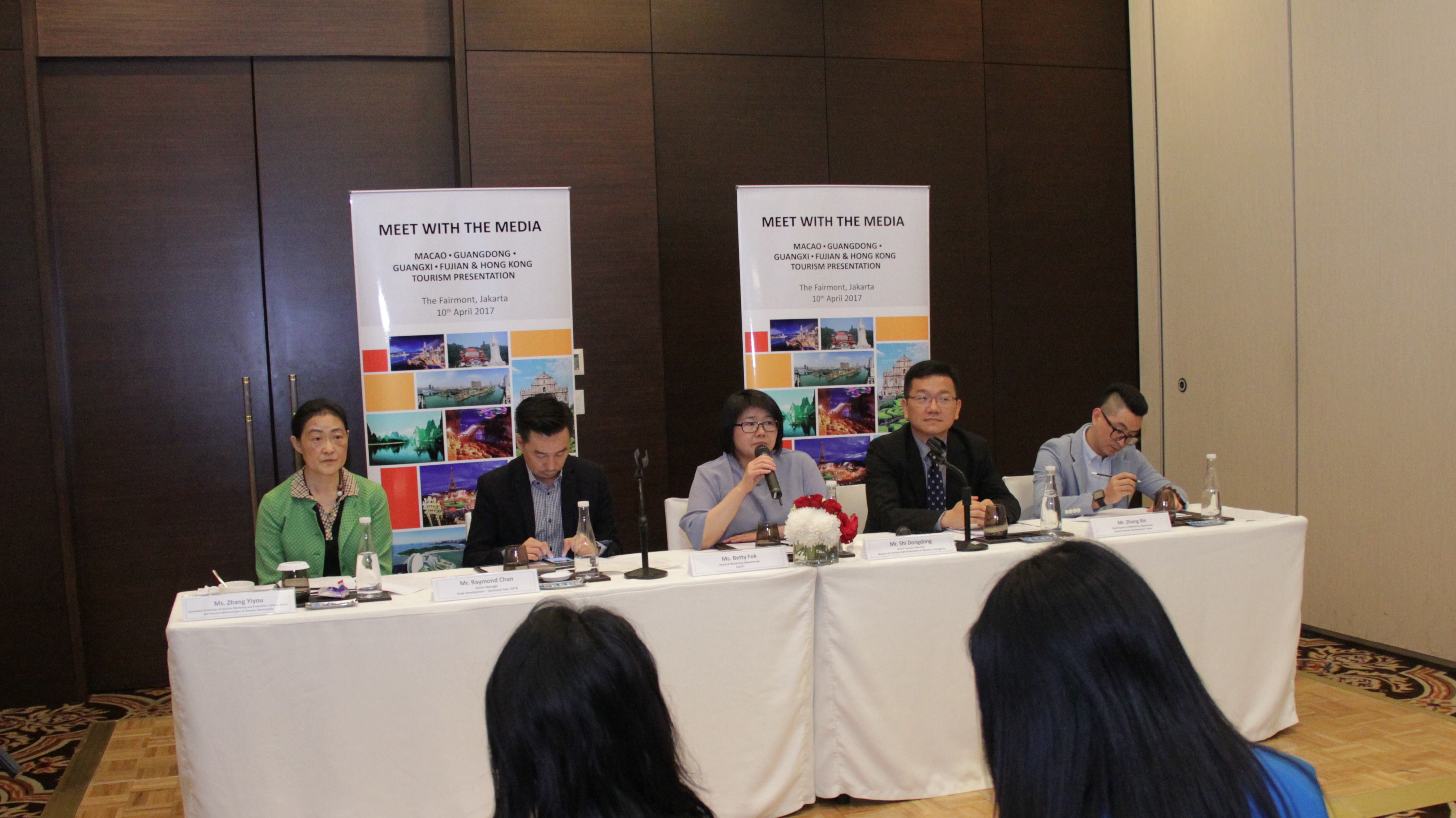 Macao Government Tourism Office (MGTO) joined hands with the tourism departments of Guangdong, Guangxi, Fujian and Hong Kong to roll out a “multi-destination” tourism promotional event in Indonesia today (10 April). MGTO strives to advance regional tourism cooperation in active support of the Macao Special Administrative Region Government’s endeavors in forging collaboration with countries and regions along the Belt and Road. The promotion also aims to tap further into the middle-haul markets, to attract a larger multitude of high-value visitors to Macao or other destinations as well in one trip.