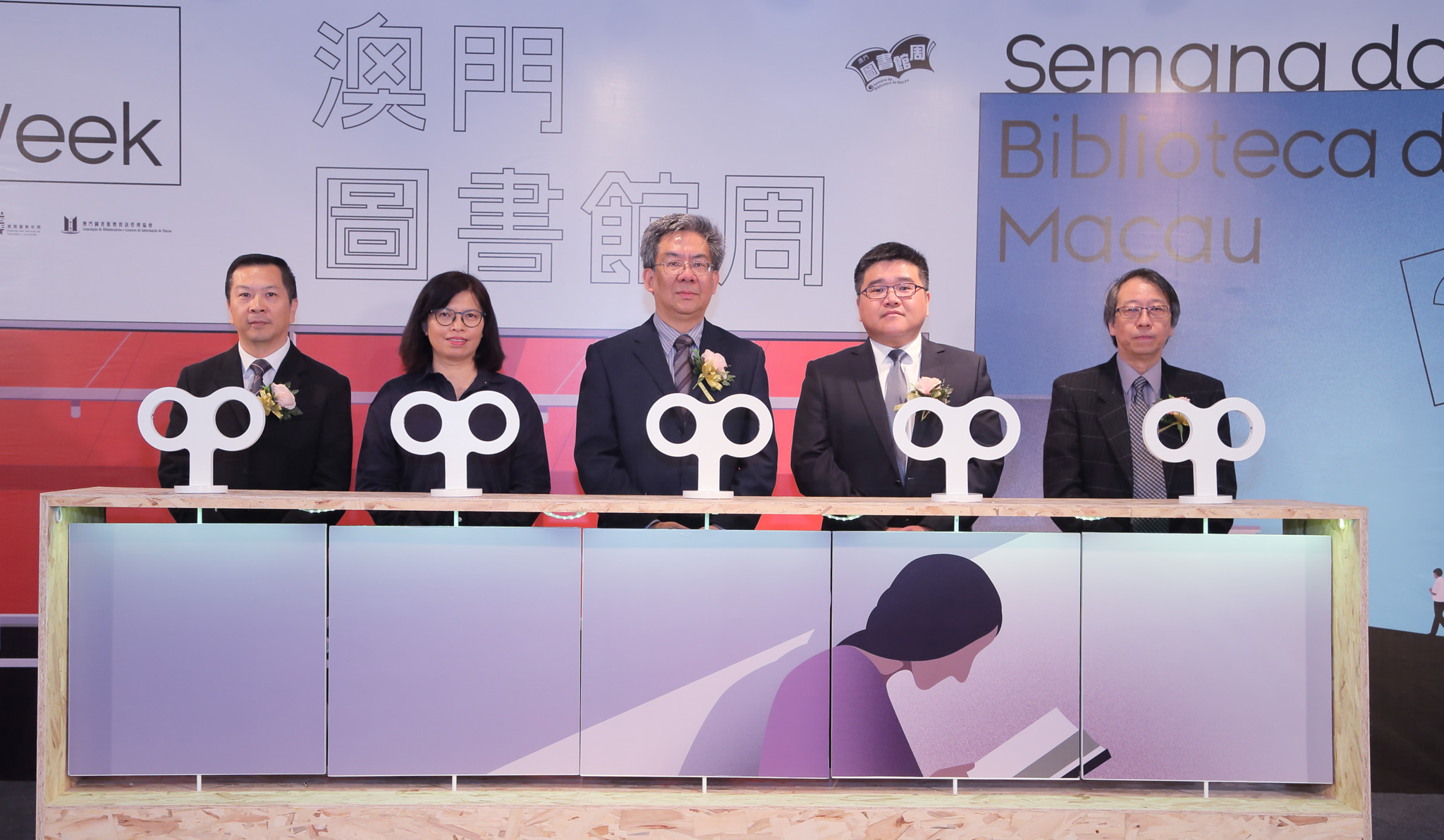 The “Macao Library Week 2017”, organized by the Macao Public Library under the Cultural Affairs Bureau (IC), the Education and Youth Affairs Bureau (DSEJ) and the Macao Library and Information Management Association (MLIMA), and co-organized by the Wu Yee Sun Library under the University of Macau, was inaugurated on 22 April, at 10:30am, at the Old Court Building. The opening ceremony was attended by the President of the Cultural Affairs Bureau, Leung Hio Ming; the Head of the Department of Public Library Management, Tang Mei Lin; the Head of the Division of Continuing Education of the Education and Youth Affairs Bureau, Kong Ngai; the Head of the Centre of Permanent Education of the Education and Youth Affairs Bureau, Cheong Kuai San; and the Director of the Macao Library and Information Management Association, Wong Kwok Keung.