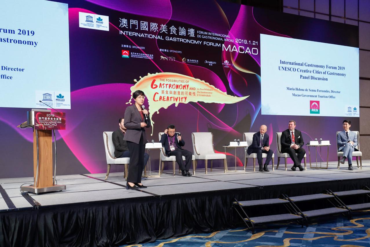 A UNESCO Creative Cities of Gastronomy panel session carried on the day with representatives from Macao, Parma, Gaziantep, Chengdu and Bergen sharing their experiences and conducting exchanges on how each city is embracing the opportunities as Creative Cities of Gastronomy to formulate new development models and forge international cooperation. MGTO Director and Macao Special Administrative Region (Macao SAR) focal point to the UNESCO Creative Cities Network, Maria Helena de Senna Fernandes, elaborated on the experience of Macao over the past year and the plans ahead in developing as a Creative City of Gastronomy.