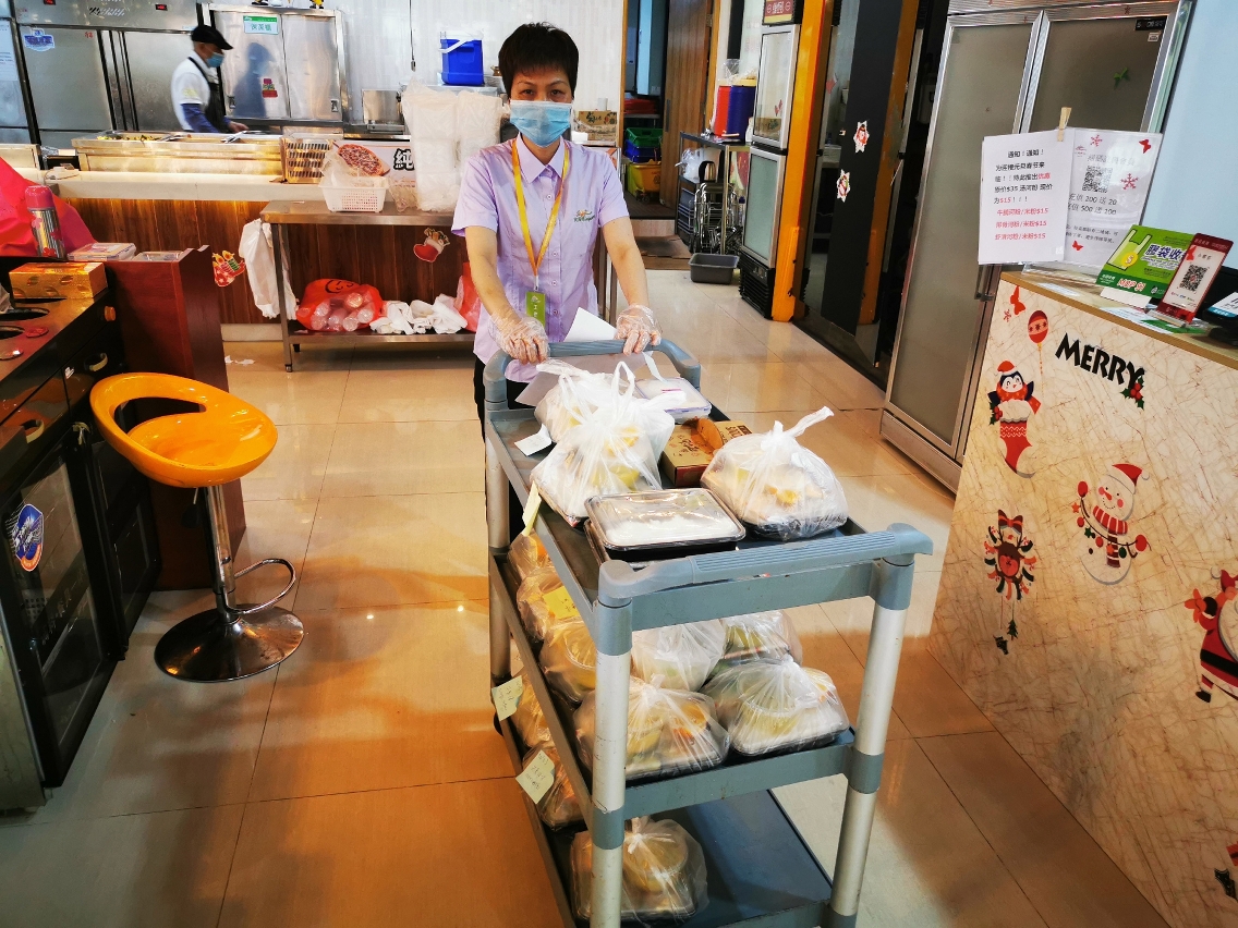 Since early February, Zhang Yinghong, the person who is in charge of the supermarket on campus, has been working every day from morning until midnight to ensure a steady supply of daily necessities for UM members. In the early stages of the epidemic, many suppliers were closed, so Zhang and his colleagues arranged vehicles to deliver goods to the university. The supermarket also increased the supply of fresh meat products in early February to provide convenience for faculty members and students living on campus.