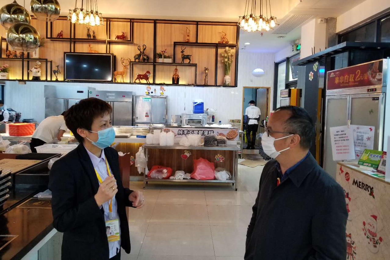 Over the past few weeks, UM has spared no effort to prevent an outbreak on campus. Rector Song expresses thanks to the workers, including security guards, cleaning workers, and employees of the restaurants and supermarket on campus, for remaining in their positions to discharge their duties in rotation. Earlier, Rector Song visited some of the service providers to learn if they had encountered any difficulties in their daily operation. According to Liang Qiao, the manager of a restaurant on campus responsible for supplying food to several residential colleges and the Postgraduate House, the restaurant did not encounter major difficulties as they had prepared sufficient food boxes and face masks when the outbreak first started. The restaurant also arranged for employees to stay in dormitory rooms. ‘Rector Song particularly reminded us to implement anti-epidemic measures and to ensure compliance with hygiene standards,’ he says.