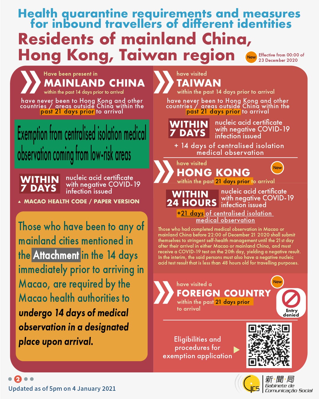 • Health quarantine requirements and measures for inbound travellers of different identities
