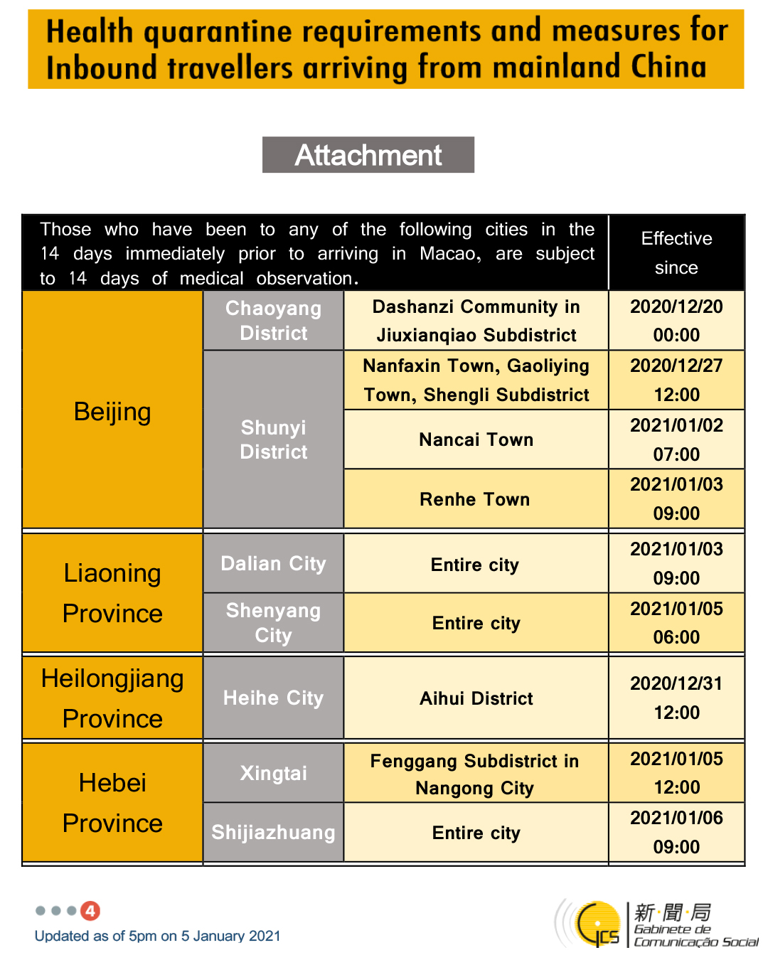 • Health quarantine requirements and measures for inbound travellers of different identities