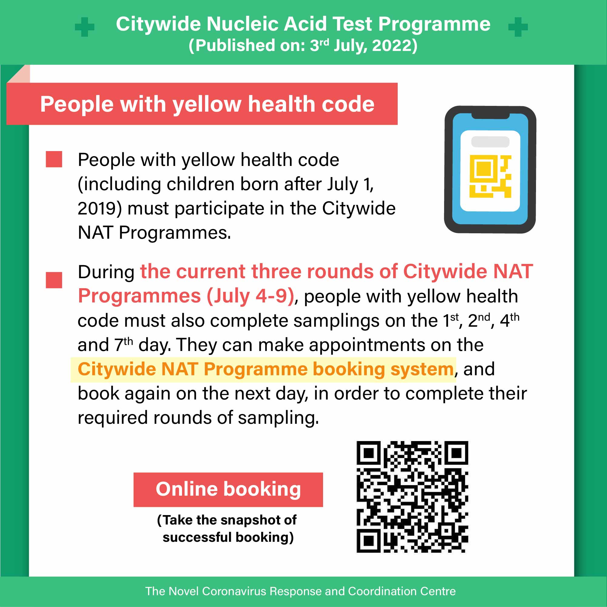 • Notes of attention for people with yellow code during the Citywide NAT Programmes