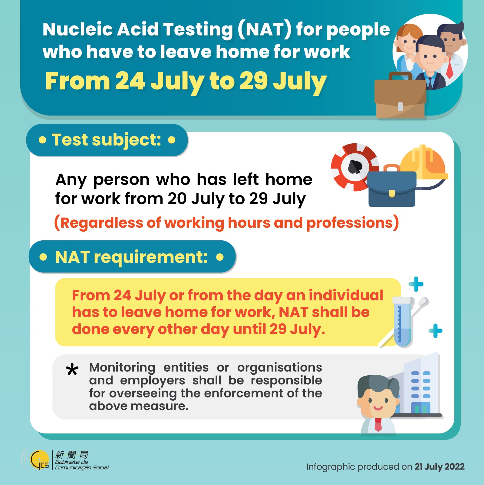 Nucleic Acid Testing (NAT) for people who have to leave home for work from 24 July to 29 July