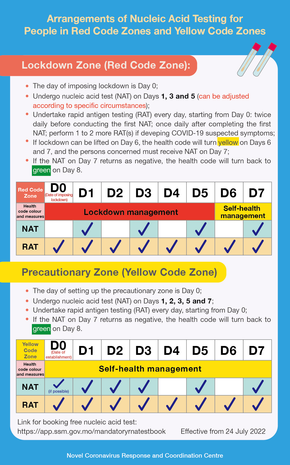 • arrangements of nucleic acid testing for people in red code zones and yellow code zones
