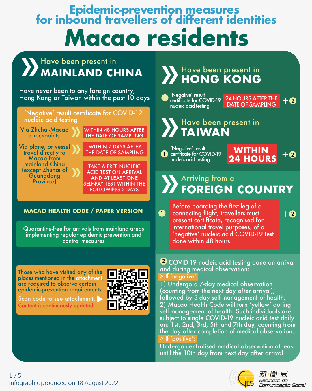 [infographic] Epidemic-prevention measures for inbound travellers of different identities (1 September 2022 )
