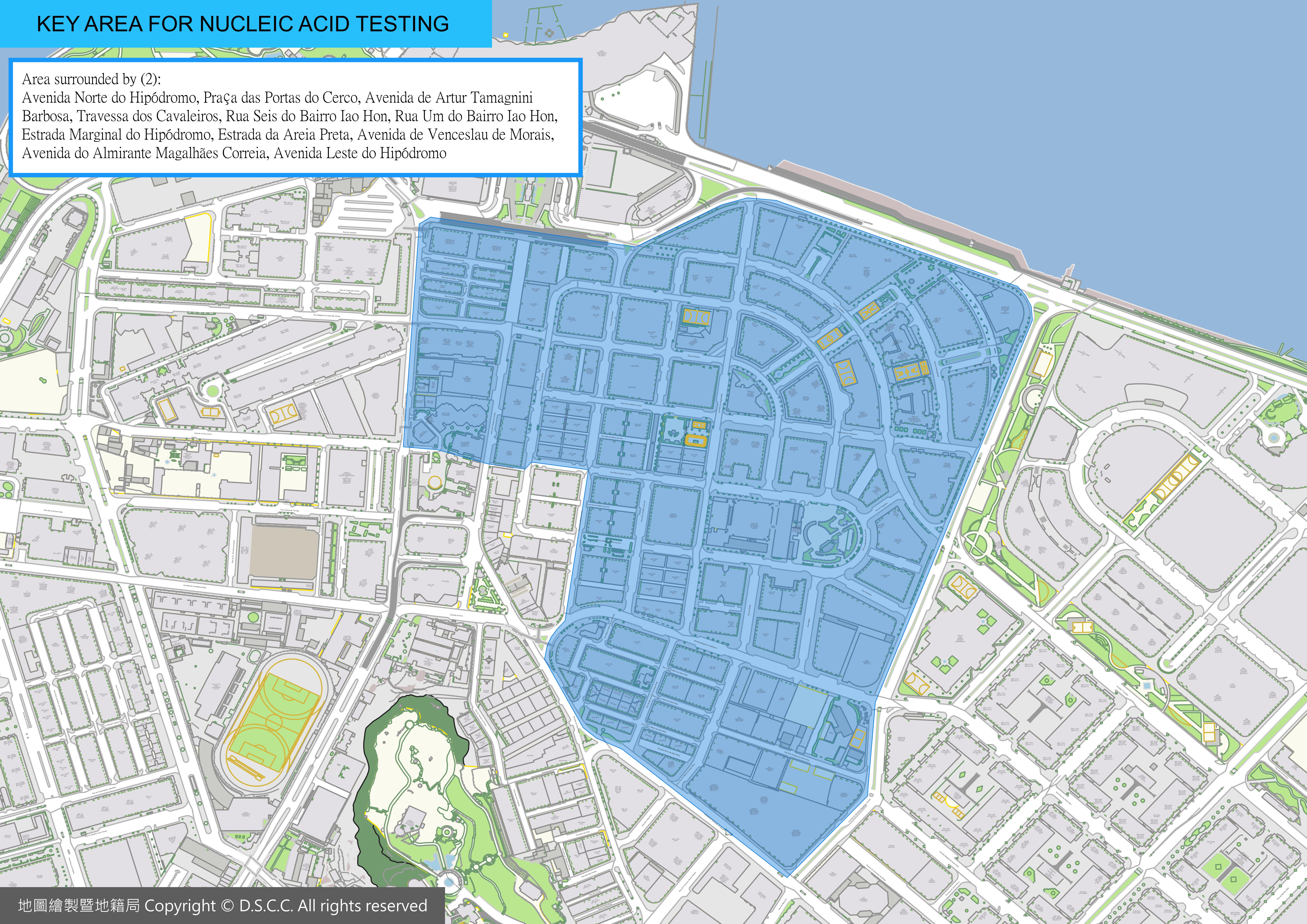 - People who live or work in the area surrounded by Avenida Norte do Hipódromo, Praça das Portas do Cerco, Avenida de Artur Tamagnini Barbosa, Travessa dos Cavaleiros, Rua Seis do Bairro Iao Hon, Rua Um do Bairro Iao Hon, Estrada Marginal do Hipódromo, Estrada da Areia Preta, Avenida de Venceslau de Morais, Avenida do Almirante Magalhães Correia, Avenida Leste do Hipódromo;