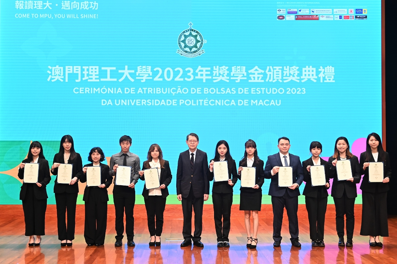 The Macao Polytechnic University held the 2023 Scholarship Award Ceremony at the University Auditorium on April 22. Scholarships were awarded to 600 outstanding students to recognise their excellent achievements in different academic and professional fields, and to encourage students to continue to strive for academic excellence and motivation. MPU aims to cultivate young leaders who are creative and competitive with an international perspective to contribute to the country.