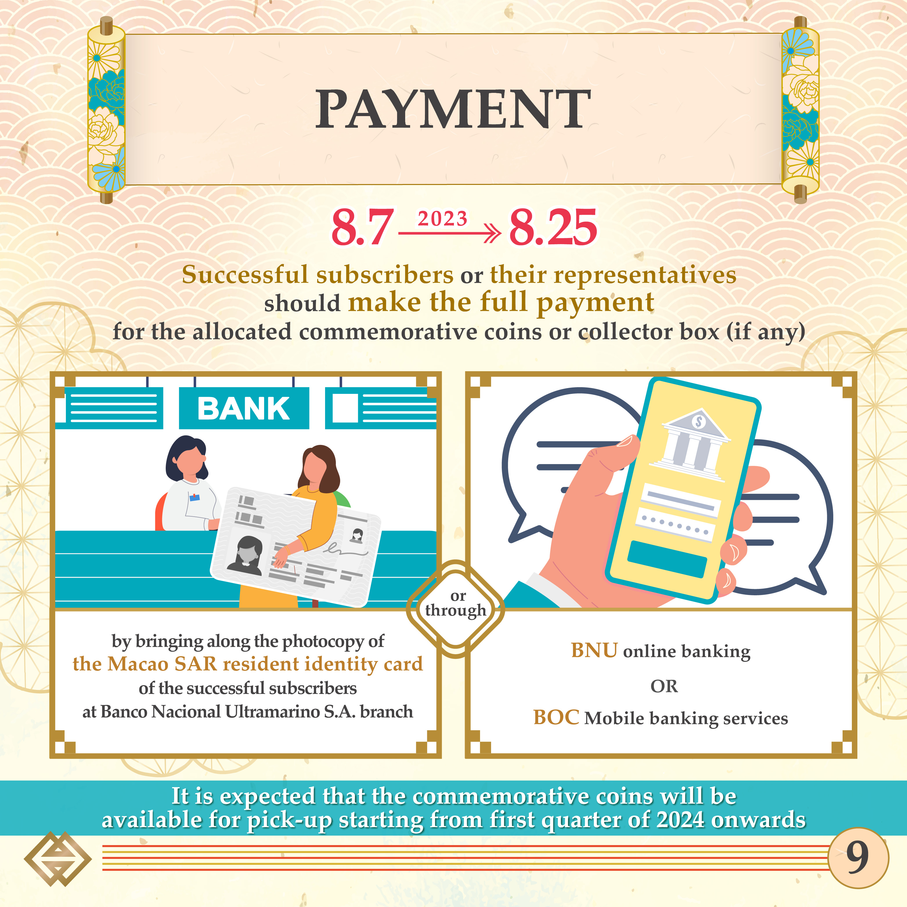 The online subscription period for the 2024 Year of the Dragon commemorative coins and Lunar Year Commemorative Coin Collector Box (2020-2031) will end at 6:00pm on 28 July 2023 (next Friday). Hence, AMCM would like to remind Macao residents who are interested in subscribing for the said coins and collector box to complete the online subscription process (https://registration.amcm.gov.mo/COCSCollection/terms_pt.html) before the mentioned deadline. A service counter has also been set up at the lobby of AMCM during the mentioned period to provide registration service for those who require assistance. For enquiries, please visit our webpage or call our hotline at 28565071 or 28565072.
