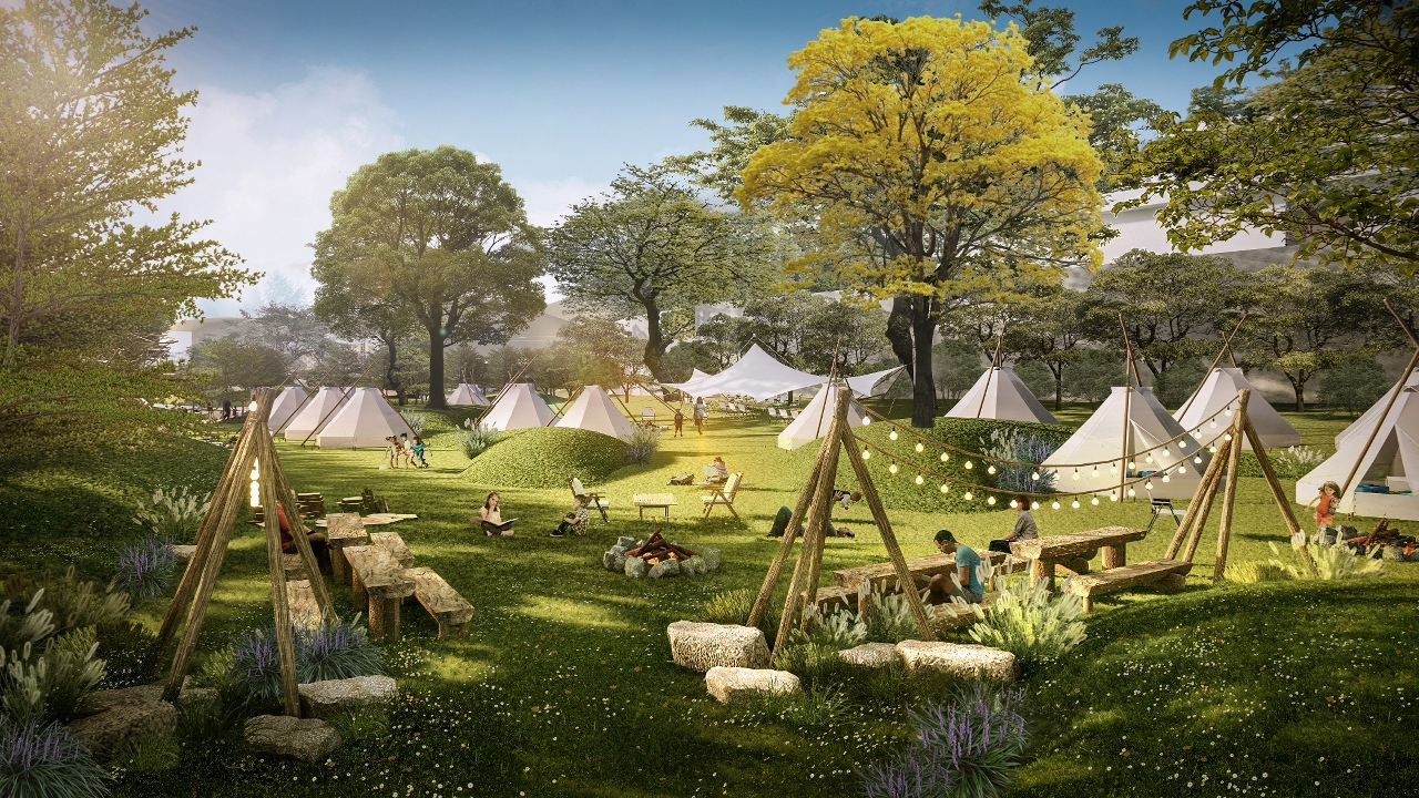 In addition, as the camp site is located in a low-lying catchment area in the district, it is susceptible to water accumulation after heavy rain. After extensive consolidation of views, especially the technical opinions offered by professional groups, IAM will utilise the characteristics of the terrain on site and the existing reservoir to build a small artificial lake with the function of sharing, regulating and storing rainwater. Besides carrying leisure, water-friendly and green landscape elements, it will also help to alleviate flooding caused by heavy rain at the camp site.