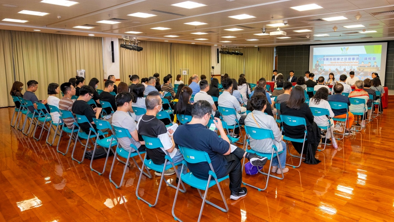 The Municipal Affairs Bureau (IAM) recently held a briefing session on “points to note for installing advertisements and signboards” in cooperation with several other government departments, introducing the relevant laws and guidelines for supervising advertisements and signboards to representatives of businesses to deepen their understanding from this aspect, as well as their responsibilities and obligations. IAM calls on the holders of advertisements or signboards to regularly check, maintain and repair them to ensure public safety.