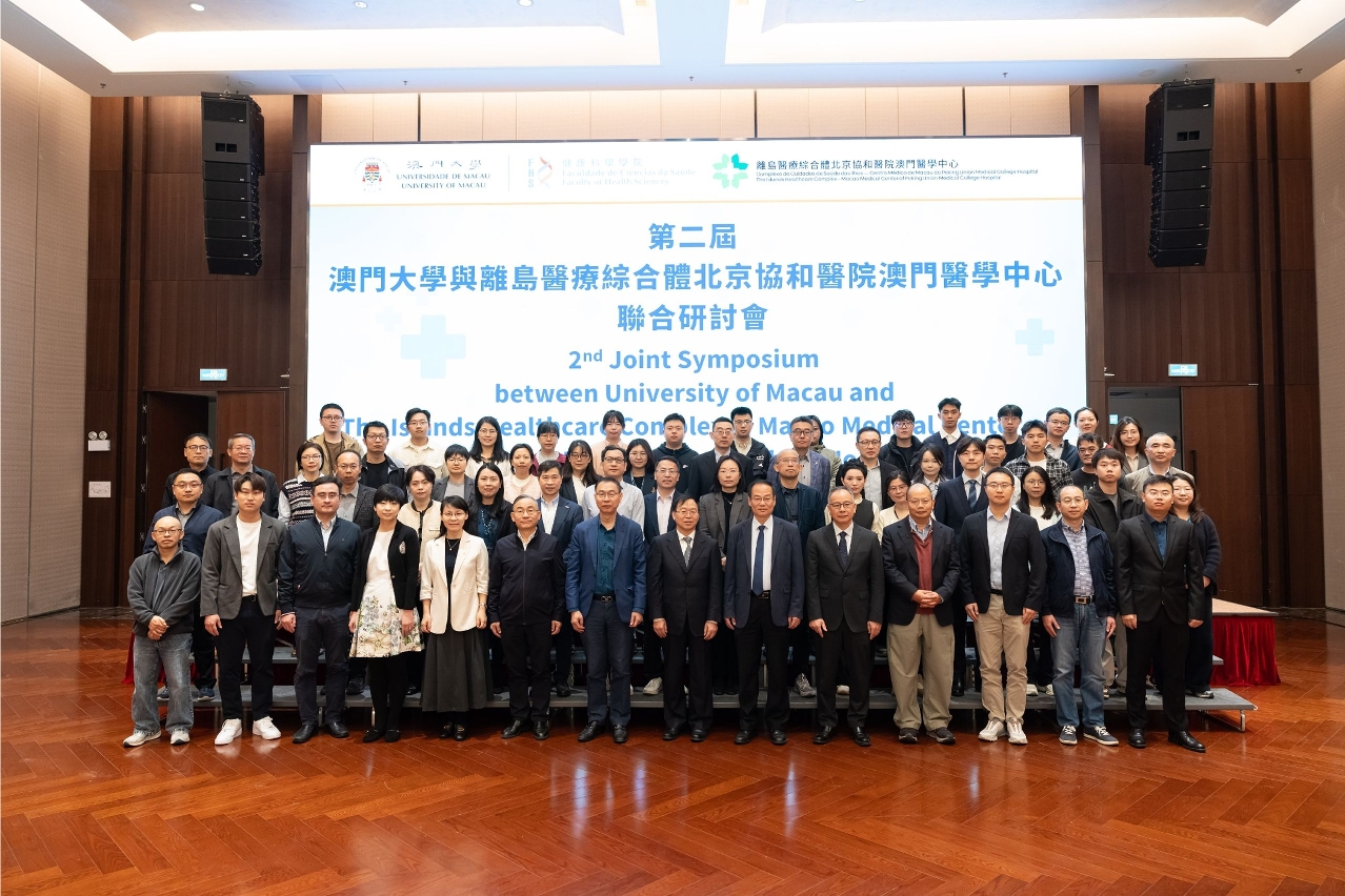 The Faculty of Health Sciences (FHS) of the University of Macau (UM) and the Islands Healthcare Complex – Macao Medical Center of Peking Union Medical College Hospital (Macao Union Medical Center) co-organised the Second Joint Symposium, which attracted more than 100 experts and scholars from medical institutions in Macao. During the event, both parties reached a consensus on several future collaborative initiatives, including promoting the sharing of research and clinical data, expanding exchange mechanisms for students and clinical staff, and strengthening systematic cooperation in precision medicine as well as the diagnosis and treatment of major diseases.