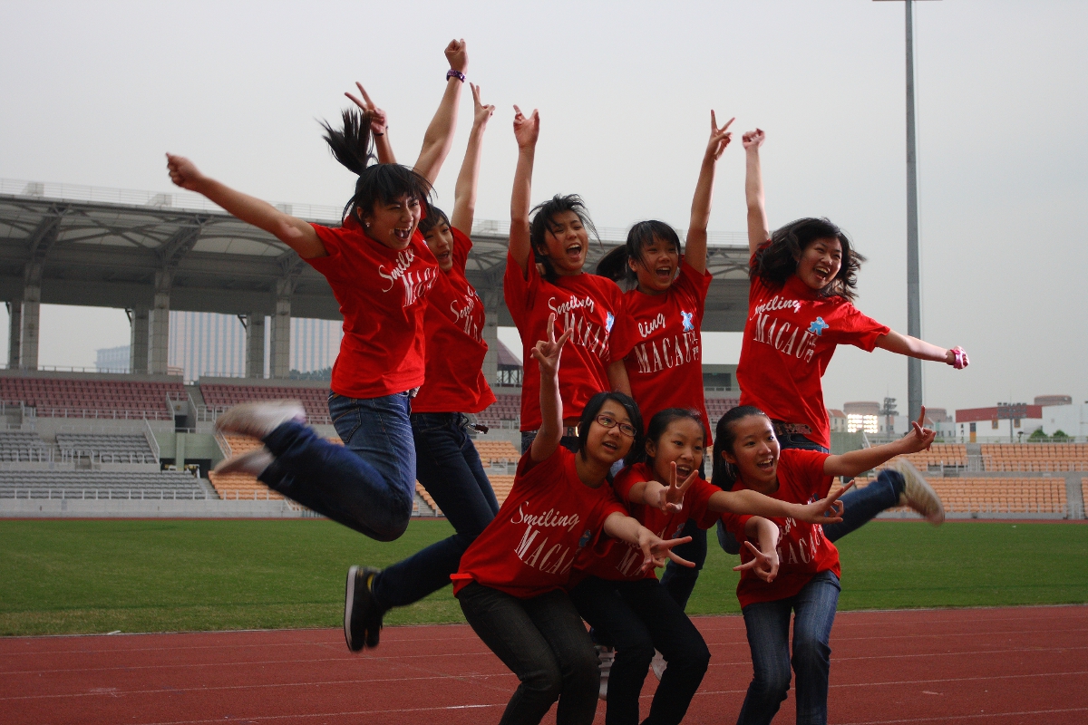 A fim de promover a participação de toda a população de Macau na Expo, em “Macau sorridente” foram convidadas pessoas de diferentes sectores, de modo a relevar o princípio da hospitalidade que reside em cada um dos habitantes de Macau. Há dias, a filmagem do sector escolar procedeu-se favoravelmente no Estádio do Complexo Olímpico de Macau, na Taipa, graças à participação activa e ao afinco de cerca de 350 docentes e discentes de 8 escolas locais. No campo do Estádio, os alunos envergaram os T-shirts de cor vermelha viva e uniram-se o seu corpo para escrever os caracteres “ngo oi ou mun” (romanizado) que significa “Macau, amo-te” e para fazer desenhos de caras sorridentes, divulgando em conjunto, a hospitalidade da população local, bem como o seu espírito de amar a pátria e Macau.