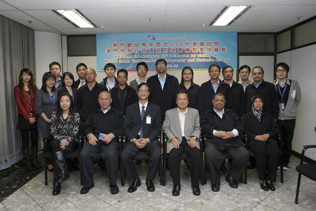 Uma delegação da Ordem de Topógrafos da Malásia (The Institution of Surveyors, Malaysia), composta por 11 elementos, fizeram uma visita de estudo a Macau, e visitaram no dia 6 de Abril do corrente a Direcção dos Serviços de Cartografia e Cadastro do Governo da Região Administrativa Especial de Macau, a fim de compreender a situação do desenvolvimento do sector de topografia e cartografia em Macau. Esta delegação foi dirigida pelo director do Departamento de Topografia e Cartografia da Malásia, Dato’ Prof. Sr. Dr. Abdul Kadir Taib, cujos elementos, para além dos sócios da Ordem, incluem também académicos de cinco universidades malaias, e a chefe do Centro de Infra-estruturas de Informação Geográfica Espacial da Malásia.
