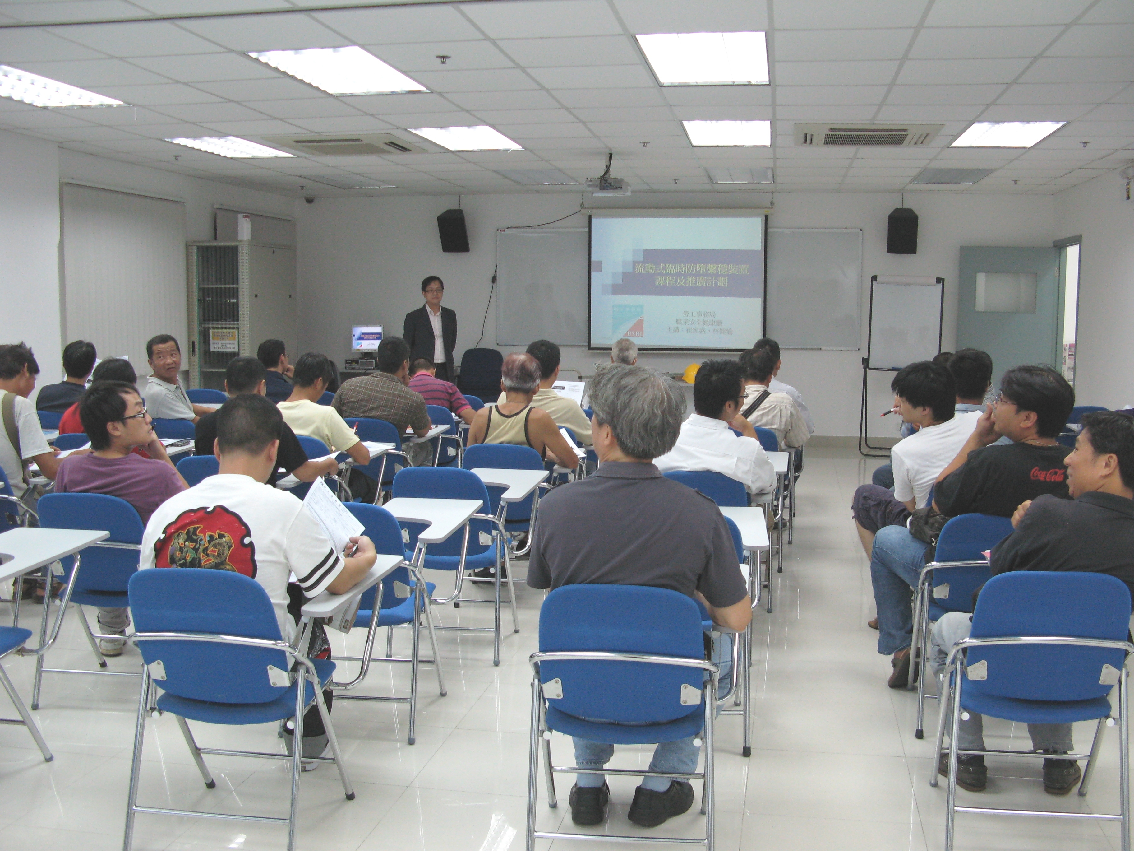 A 1ª sessão, realizada em 13 de Agosto, contou com a participação de cerca de 50 trabalhadores de mais de 20 empresas daqueles sectores. O pessoal do Departamento de Segurança e Saúde Ocupacional da DSAL fez a apresentação detalhada do curso e do pacote promocional, inclusive dos materiais e a demonstração do seu manuseamento, e também explicações da legislação sobre a segurança e saúde ocupacional no respeitante a trabalhos em altura, permitindo aos participantes conhecerem os efeitos daqueles dispositivos contra quedas nos trabalhos em altura. Os participantes manifestaram muito interesse nos requisitos para o pedido daqueles dispositivos, respectivas formalidades, regulamentação e exigências sobre a sua utilização, etc...