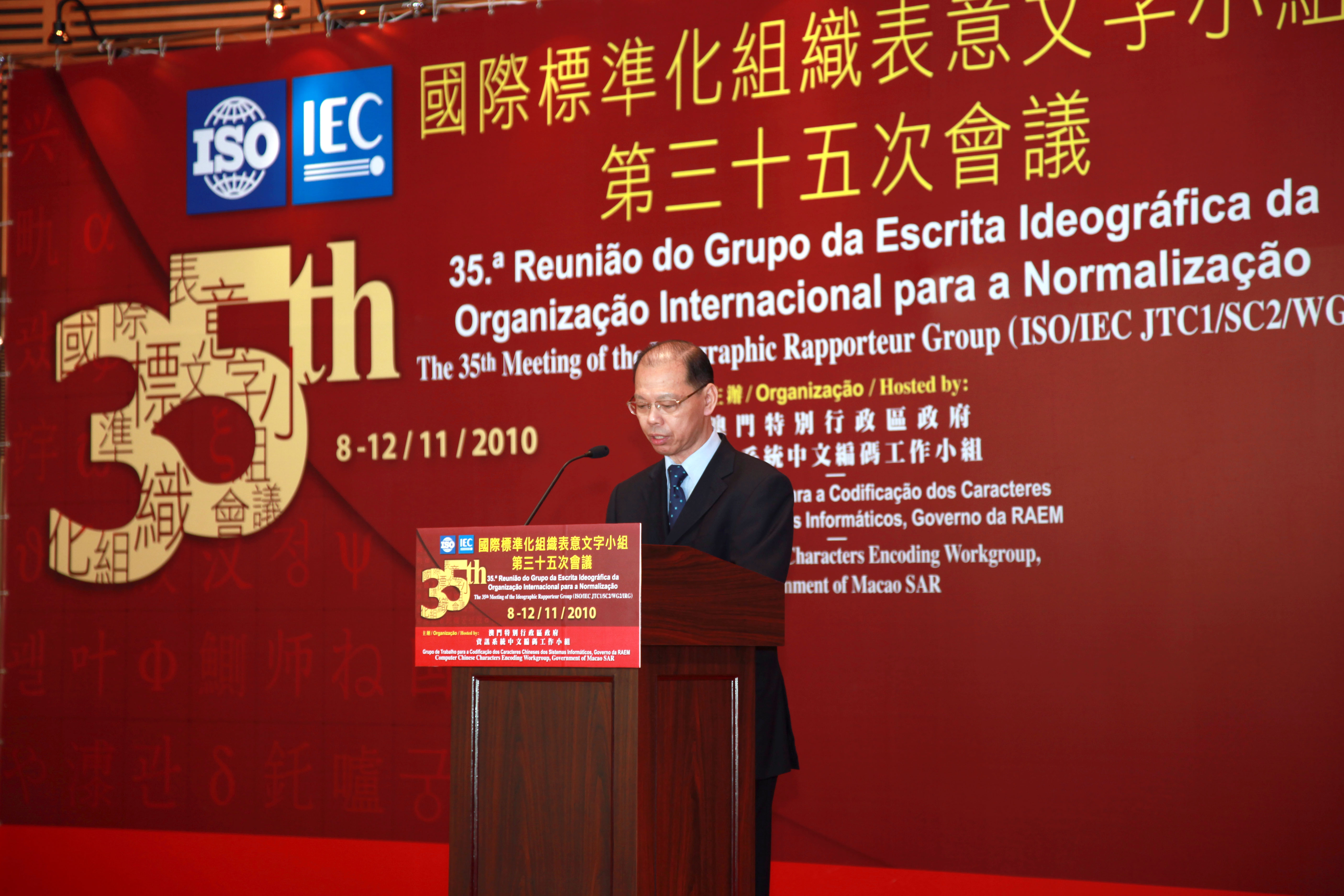 A 35.ª Reunião do Grupo da Escrita Ideográfica da Organização Internacional para a Normalização, organizada pelo Governo da RAEM e realizada pelo Grupo de Trabalho para a Codificação dos Caracteres Chineses dos Sistemas Informáticos, teve lugar nos dias 8 a 11 de Novembro de 2010, na sala de reunião do Centro de Ciência de Macau, contando com a participação de mais de 40 representantes vindos da China, Hong Kong, Japão, Correia do Sul, Taiwan, Estados Unidos da América e Macau, nomeadamente pessoal dedicado à normalização de codificação dos sistemas informáticos, peritos na área da língua chinesa e representantes do respectivo sector.