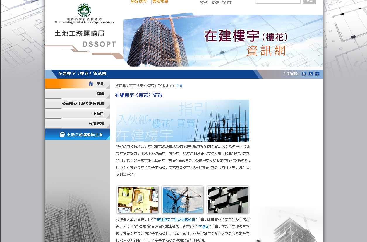 E a DSSOPT veio já ultimamente oficiar a mais de uma centena de promotores imobiliários responsáveis pela construção de edifícios nestas circunstâncias para entregarem, no período compreendido entre 1 a 5 de Julho do corrente ano, o ponto de situação da venda das fracções autónomas do edifício em construção referente ao mês de Junho e anteriores, assim como a entrega periódica até o 3.º dia útil de cada mês das informações mais actualizadas. Assim sendo, deverão ser entregues para consulta pública através da internet as informações referentes a todas as fracções autónomas do edifício em construção que serão objecto de pré-venda pública e as fracções autónomas do edifício em construção cujo anteprojecto tenha já sido aprovado e que o seu despacho de aprovação está ainda válido, sem entretanto ter ainda sido emitida a Licença de Utilização. Contudo, relativamente a alguns empreendimentos em que não foi ainda aprovado o anteprojecto, não tendo assim por conseguinte sido ainda aprovado o projecto final, as suas informações não estarão disponíveis para consulta no citado portal electrónico, pelo que os cidadãos poderão assim através deste meio estar cientes da situação da sua apreciação, e que permitirá salvaguardar os seus próprios direitos e interesses. Relativamente aos edifícios já construídos e que foi já emitido a Licença de Utilização, apesar de não se encontrar no âmbito das fracções autónomas do edifício em construção, contudo caso os cidadãos necessitem conhecer estas informações poderão consultar estas informações na coluna “cedência de informações” no portal electrónico desta DSSOPT.