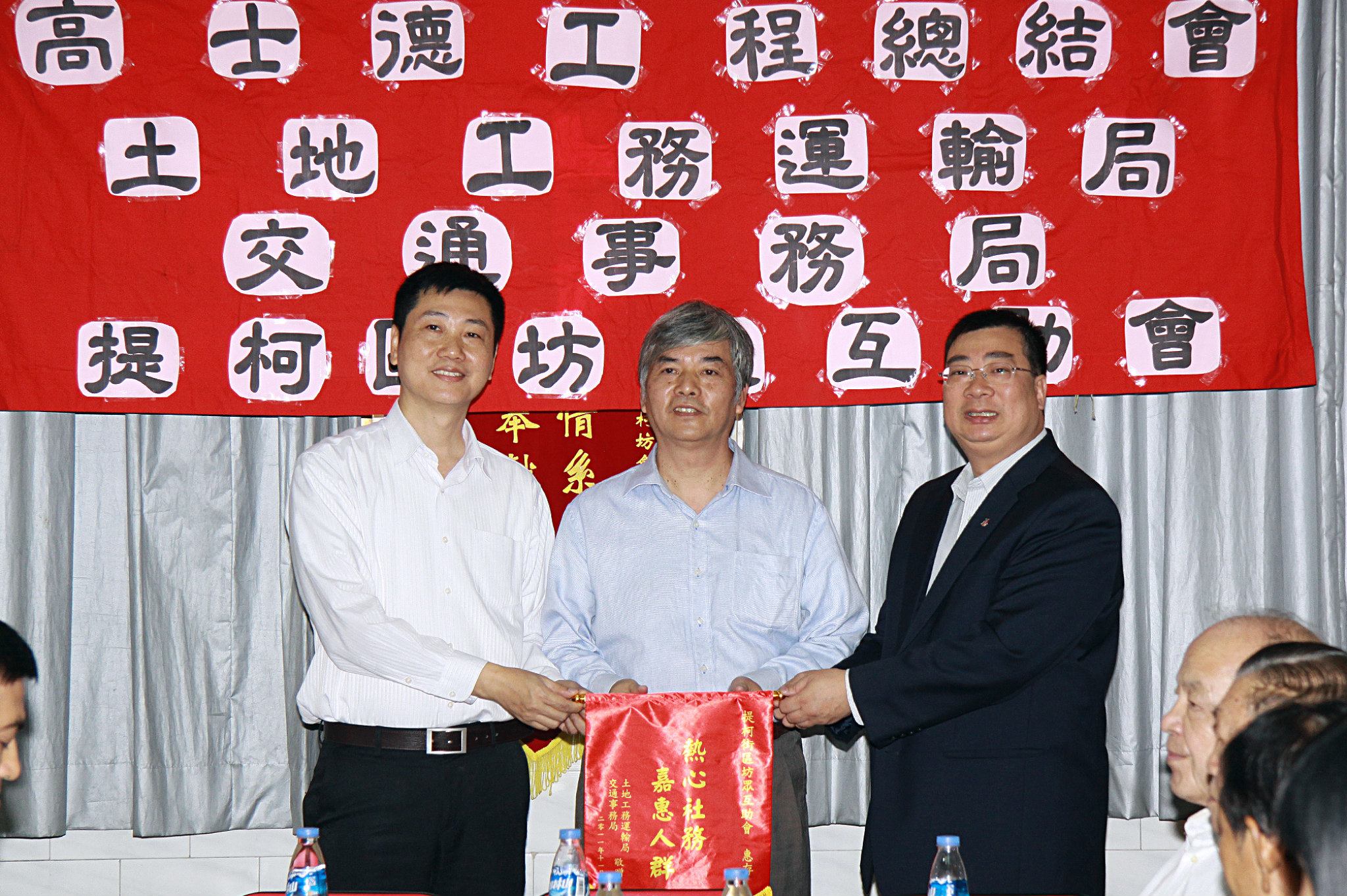 Na visita realizada na manhã de hoje (dia 30 de Novembro) à Associação de Beneficência e Assistência Mútua dos Moradores do Bairro O T'âi, o Subdirector da DSSOPT, Shin Chung Low Kam Hong (Daniel), e o Sudirector da DSAT, Chiang Ngoc Vai (Nelson), entregaram à direcção desta uma pequena recordação como manifestação de agradecimento pelo apoio prestado ao longo de toda a obra.