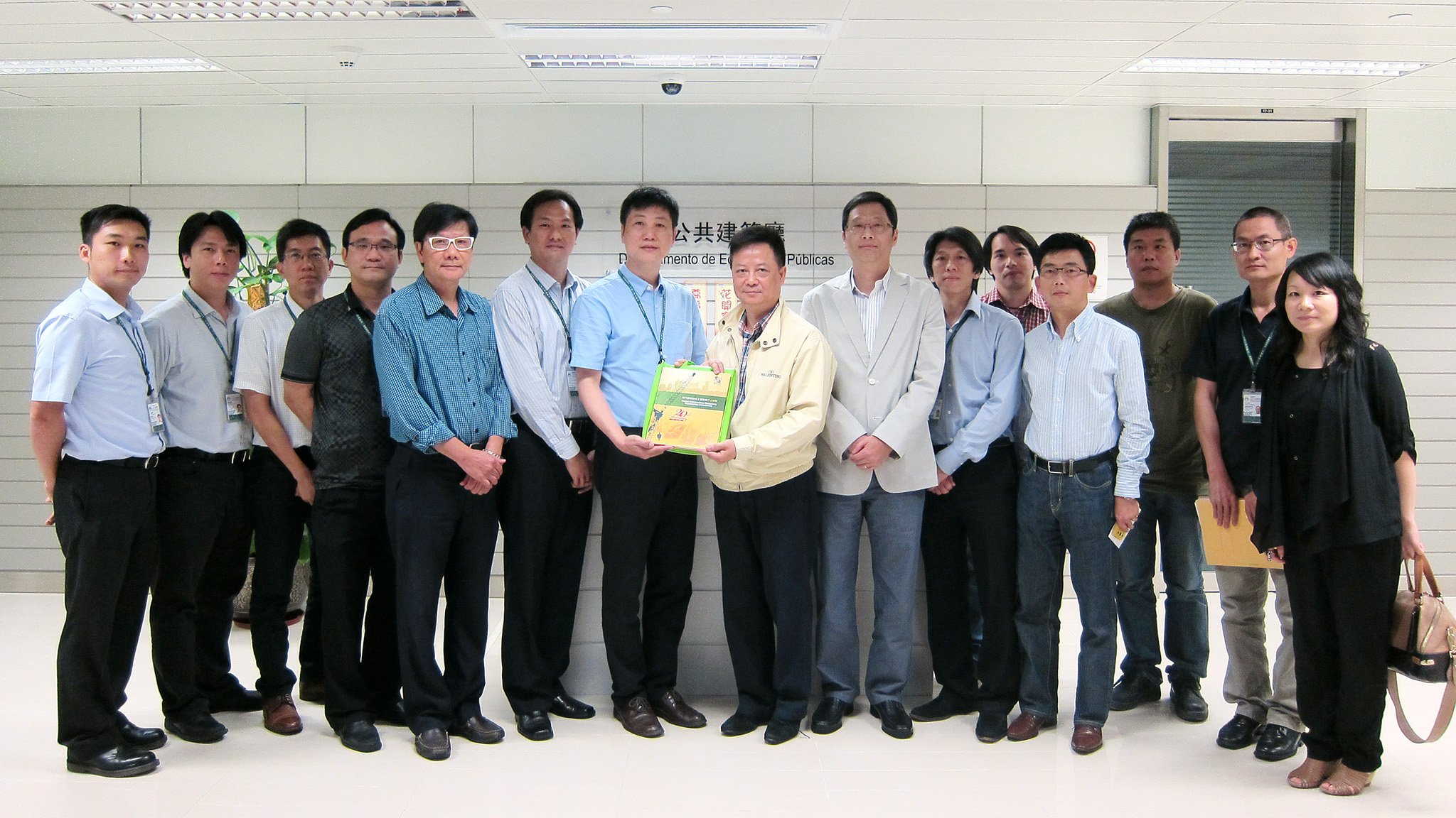 O Presidente do Conselho de Administração, Wong Chong Seng, o Secretário-geral, Lao Iok Wai, o Vice-Presidente do Conselho de Administração, Ng Kai Wa, e o membro do Conselho de Administração, Lao Meng Ian, da Associação dos Proprietários de Máquinas de Construção Civil de Macau, visitaram a DSSOPT na passada quinta-feira (dia 13 de Junho) e trocaram opiniões com os representantes desta Direcção de Serviços, designadamente o Subdirector da DSSOPT, Shin Chung Low Kam Hong, o Chefe do Departamento de Infra-Estruturas, Kuok Chi Cheong, o Chefe, subst.º, do Departamento de Edificações Públicas, Loi Seong San, o Chefe da Divisão de Geotécnica e Vias de Comunicação, Lok Wai Choi, o Chefe da Divisão de Hidráulica e Saneamento, U Weng Long, o Chefe da Divisão de Obras e Projectos, Lau Koc Kun, e o Chefe, subst.º, da Divisão de Conservação e Reparação, Fok Wai Pio, sobre o lançamento das obra públicas e a divulgação de informações sobre a matéria.