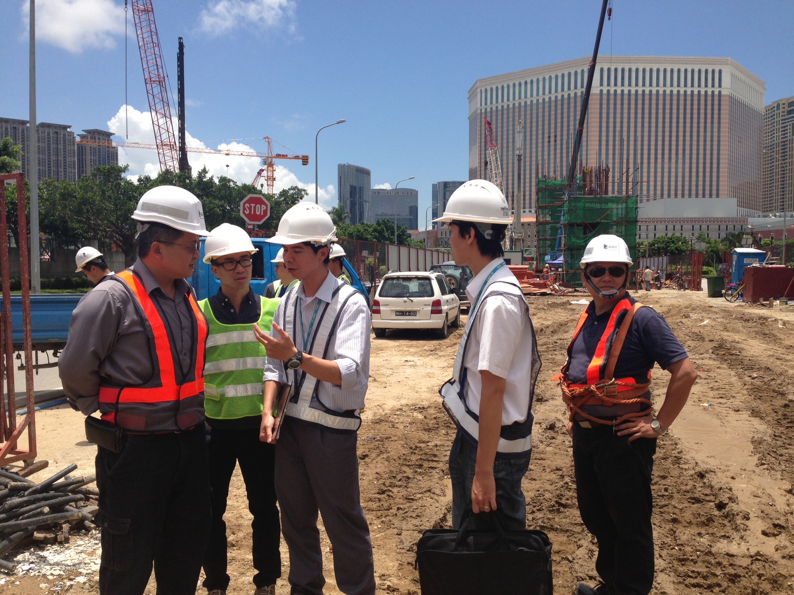 No estaleiro em causa onde está em execução a empreitada de construção das fundações em estaca do viaduto do Metro Ligeiro, e as causas do acidente estão ainda a ser apuradas. Após o acontecimento, o Gabinete para as Infra-estruturas de Transportes (GIT) enviou, de imediato, pessoal para acompanhar e tratar dos trabalhos posteriores no local, tendo instruindo o empreiteiro para limpar o mais rapidamente possível a faixa de rodagem interrompida, a fim de evitar afectar a deslocação dos cidadãos; e a Direcção dos Serviços para os Assuntos Laborais, por sua vez, também enviou o seu pessoal para o acompanhamento “in loco”.