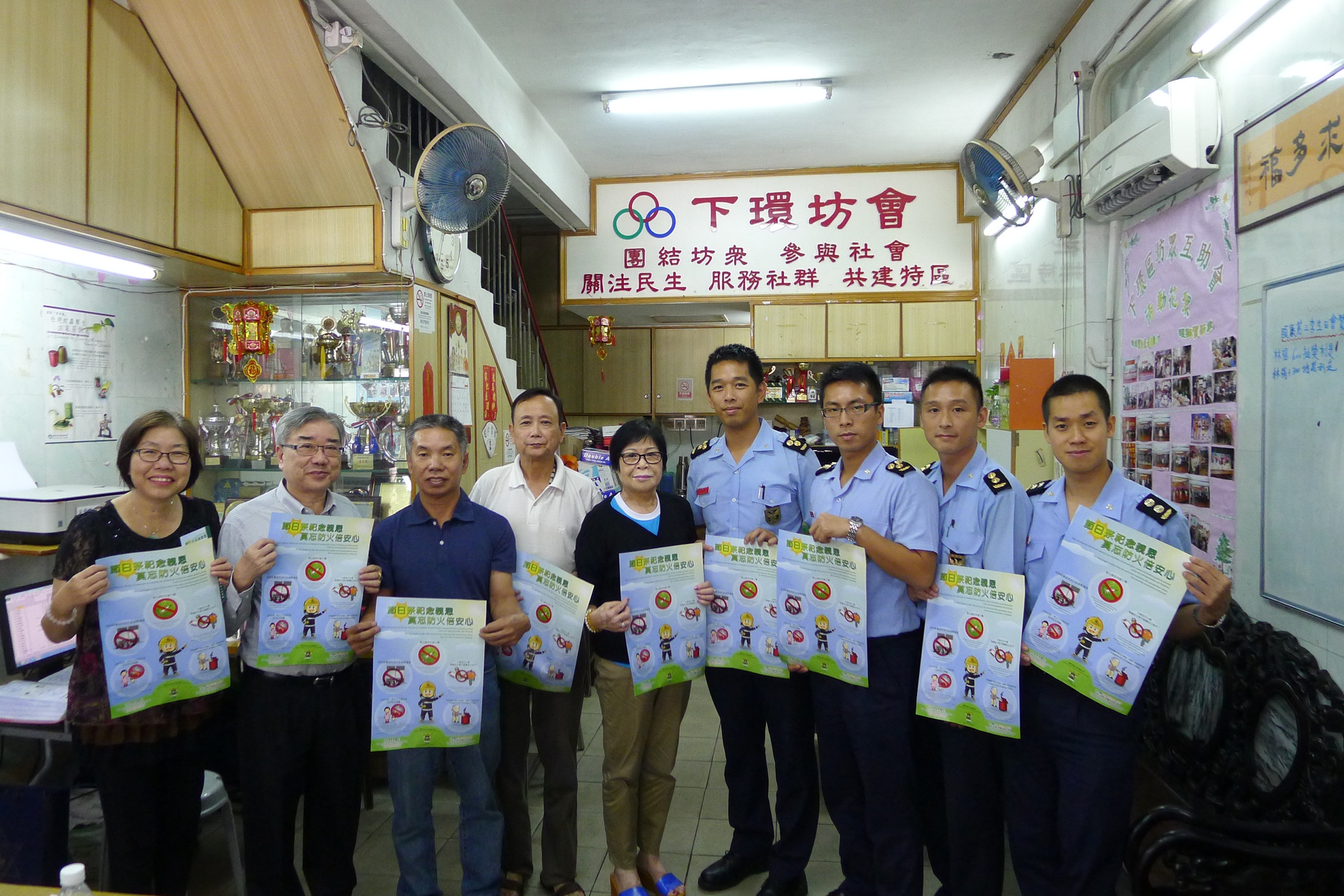 As acções acima mencionadas executam-se entre os dias 11 e 18 de Setembro do corrente ano, e distribuem-se os panfletos e cartazes aos cidadãos da Zona Norte, Zona dos Aterros do Porto Exterior e Zona da Taipa. Além do mais, o CB enviou os seus oficiais para visitarem a Associação de Mútuo Auxílio dos Moradores de Mong-Há e a Associação de Mútuo Auxílio do Bairro, abrangendo a Rua da Praia do Manduco, respectivamente, nos dias 11 e 13 do corrente mês, durante as visitas, ambas as partes discutiram e trocaram opiniões sobre as tarefas alusivas à prevenção contra o fogo, combate a incêndios e socorro nas respectivas zonas. Simultaneamente, os oficiais desta Corporação realizaram também uma palestra sobre a prevenção do fogo destinada aos membros da Associação de Mútuo Auxílio dos Moradores de Mong-Há, e distribuíram os materiais publicitários de prevenção contra incêndios dentro da zona, com o apoio dos voluntários da mesma.