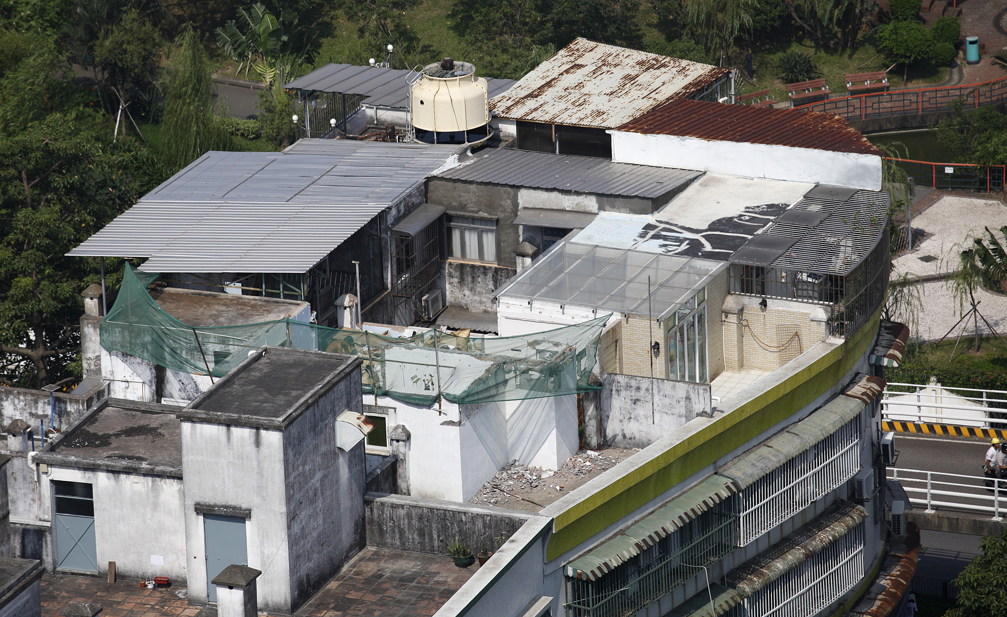 Dentre o total de 6 fracções habitacionais do bloco B do Edifício Pak Tou, sito na Rua dos Currais, foram executadas construções ilegais em metal, betão e parede de alvenaria e tijolo no terraço de 4 fracções habitacionais. Parte destas construções ilegais estão habitadas, tendo ainda alguns infractores alterado a escada de acesso ao terraço e acrescido portão no acesso de ligação à construção ilegal, ocupando assim o espaço comum do edifício. Considerando que o terraço consiste num dos acessos de evacuação em caso de incêndio, a sua obstrução prolongada virá por em caso a segurança de todos os moradores do edifício. Apesar de não haver construções ilegais em parte do terraço, contudo o terraço foi cercado de obras ilegais, o que obstrui o acesso de evacuação. Além disso, este facto impossibilitou também a limpeza do esgoto entupido, conduzindo assim ao aparecimento de infiltração de água nas fracções habitacionais dos pisos inferiores. Logo então, tendo em conta a gravidade cada vez mais acentuada da situação e após os contactos preliminares com os donos destas obras ilegais, veio a DSSOPT no corrente ano classificar o caso como tratamento prioritário em virtude da falta de cooperação destes, tendo ainda no mês passado publicado o edital para lhes exigir a demolição das construções ilegais com a maior brevidade possível, caso contrário virá o Grupo de Demolição e Desocupação das Obras Ilegais proceder à sua demolição, ficando as respectivas despesas ao encargo dos infractores.