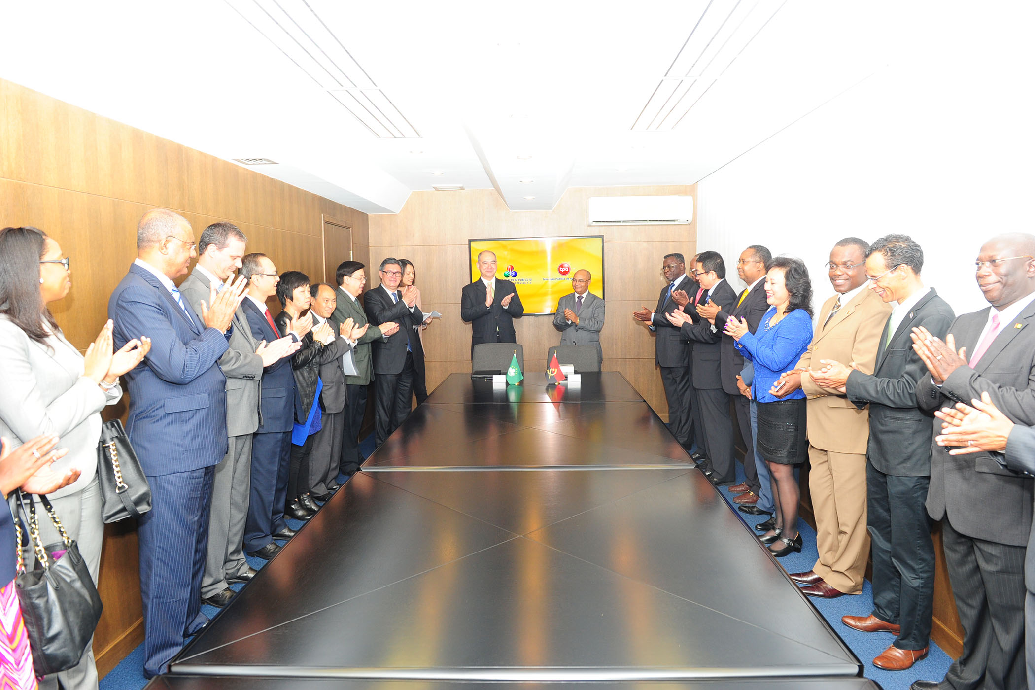 O Acordo foi rubricado entre o Presidente da Comissão Executiva da TDM, Dr. Manuel Gonçalves Pires Júnior e o Administrador da Televisão Pública de Angola, E.P., Dr. Manuel António da Silva, e contou com a presença do Senhor Embaixador de Angola, Dr. João Garcia Bires, do Senhor Director da Direcção Ásia Oceânia do Ministério das Relações Exteriores de Angola, Embaixador André Panzo, do Cônsul-Geral de Angola na RAEM, Dr. Pedro da Silva Feijó Sobrinho, do Secretário-Geral, Dr. Chang Hexi, do Secretário-Geral Adjunto (em representação dos Países de Língua Portuguesa), Dr. Marcelo d’Almeida, da Secretária-Geral Adjunta (em representação do Governo da RAEM), Dra. Rita Santos, e dos Delegados junto do Secretariado Permanente de Angola, Dr. Joaquim Gama, de Cabo Verde, Dr. Mário Vicente, da Guiné-Bissau, Eng. Malam Camará e de Timor-Leste, Dr. Cornélio Ferreira.
