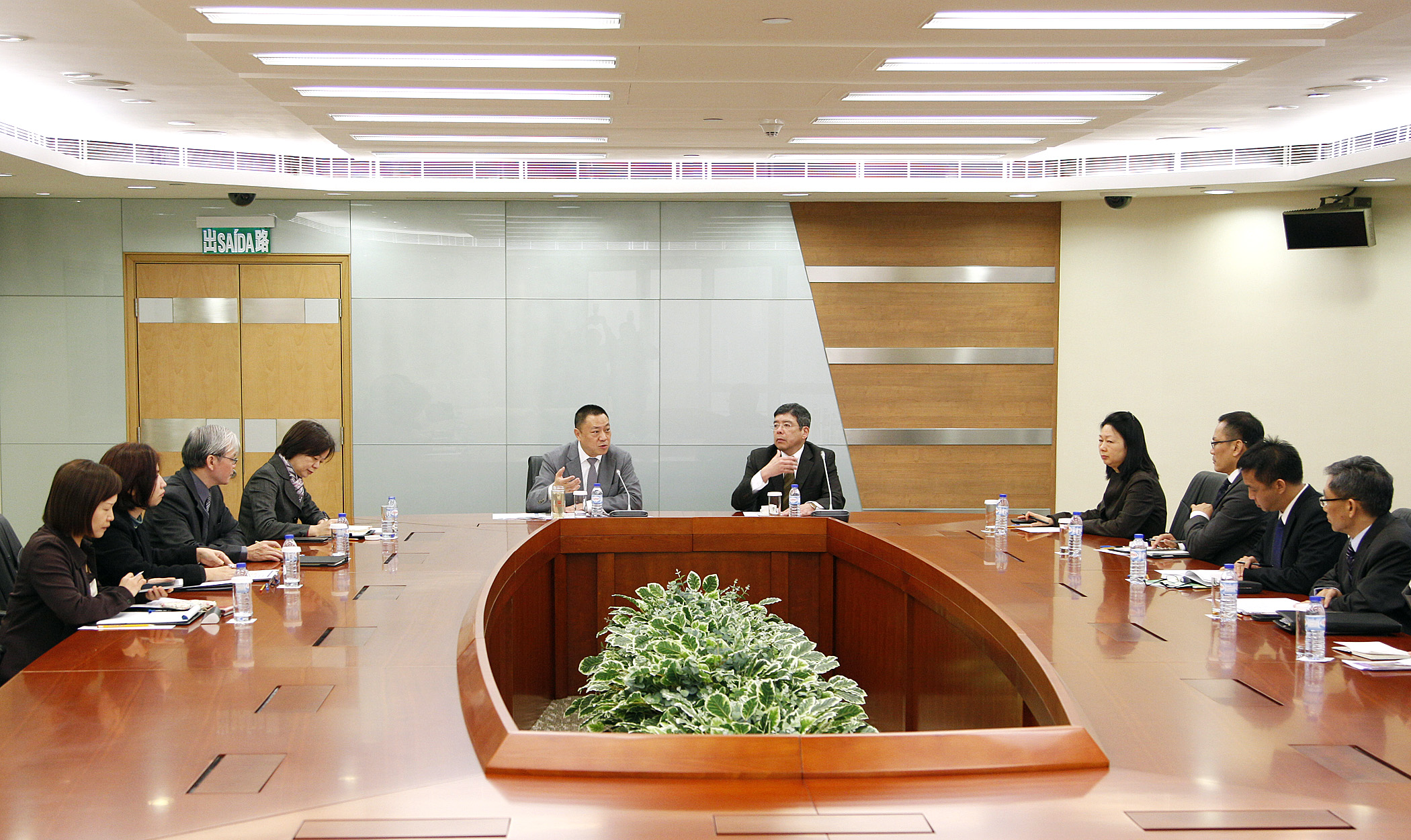 A reunião contou ainda com a presença dos seguintes elementos: Chefe do Gabinete do Secretário para a Economia e Finanças, Lok Kit Sim; Chefe do Gabinete do Secretário para os Transportes e Obras Públicas, Cheong Chui Ling; Director da DSAL, Wong Chi Hong; Coordenadora do GRH, Lou Soi Peng; Director da DSSOPT, Li Can Feng; Coordenador subst., do GDI, Chau Vai Man e Coordenador subst. do GIT, Ho Cheong Kei.