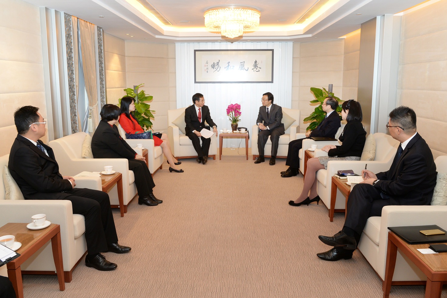 Estiveram também presentes no encontro o chefe do Gabinete do Secretário para os Assuntos Sociais e Cultura, Lai Ieng Kit, e os assessores Heidi Ho e Charles Lam.