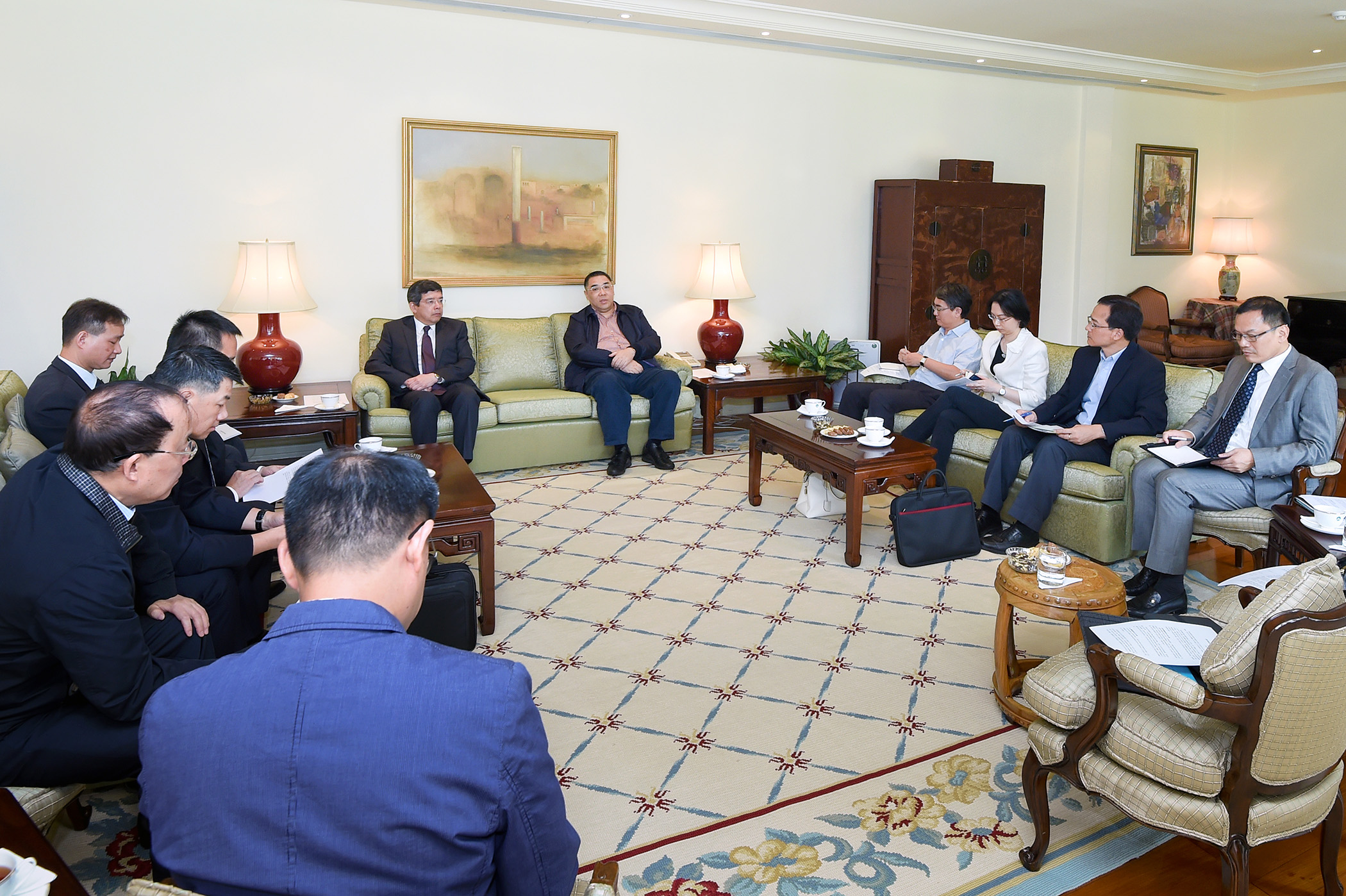 Na reunião também estiveram presentes a chefe do Gabinete do Chefe do Executivo, O Lam, o director do Gabinete de Comunicação Social, Victor Chan, o comandante do Corpo de Polícia de Segurança Pública, Leong Man Cheong, o assessor do Gabinete do Chefe do Executivo, Wu Kan, e o porta-voz adjunto do Governo, U Man Fong.