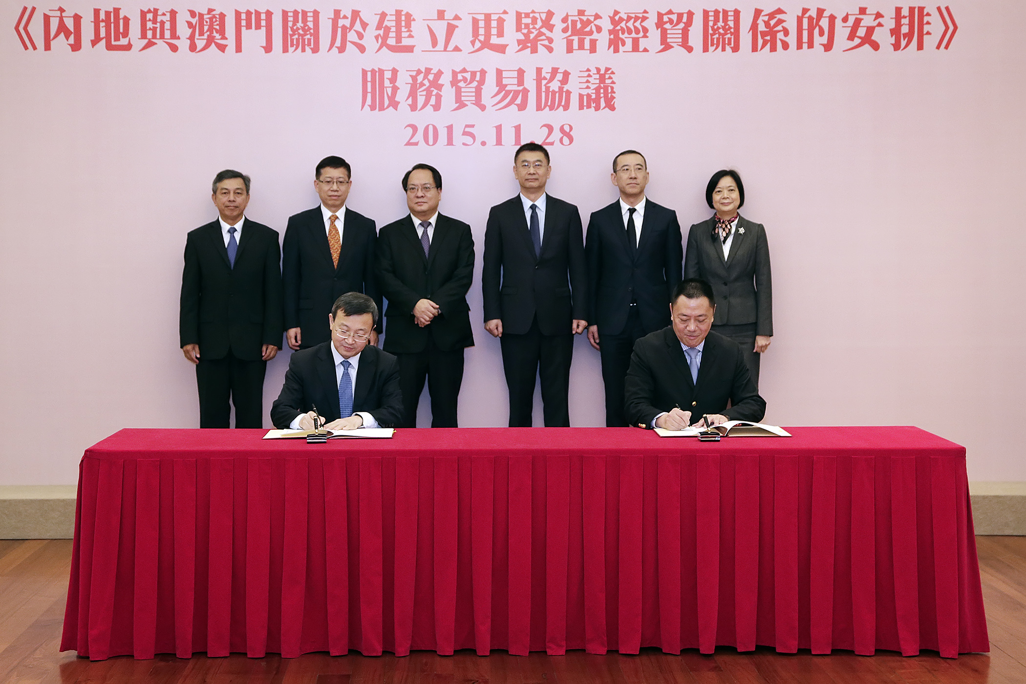 Foi assinado, hoje (dia 28 de Novembro de 2015), em Macau, o Acordo sobre Comércio de Serviços (adiante designado por Acordo) no âmbito do Acordo de Estreitamento das Relações Económicas e Comerciais entre o Interior da China e Macau (adiante designado por Acordo CEPA). De acordo com o Acordo, a partir do dia 1 de Junho de 2016, 153 sectores do comércio de serviços de Macau serão liberalizados no Interior da China, além disso, serão acrescentadas 20 medidas de liberalização nos sectoresem que se adopta lista positiva, incluindo o aumento de 6 a136novos sectores liberalizados no domínio dos estabelecimentos industriais ou comerciais em nome individual. O Acordo é o primeiro a ser assinado, a nível de toda a região do Interior da China, no domínio da liberalização de comércio, sob um princípio que estipula um Tratamento Nacional, a alguns sectores de serviços de Macau, previamente ao estabelecimento das suas empresas, usando uma ‘lista negativa’ para a liberalização plena do Comércio de Serviços. O Acordo retoma o conteúdo das fases anteriores do Acordo CEPA, representando a concretização básica da liberalização do comércio de serviços entre toda a região do Interior da China e Macau.