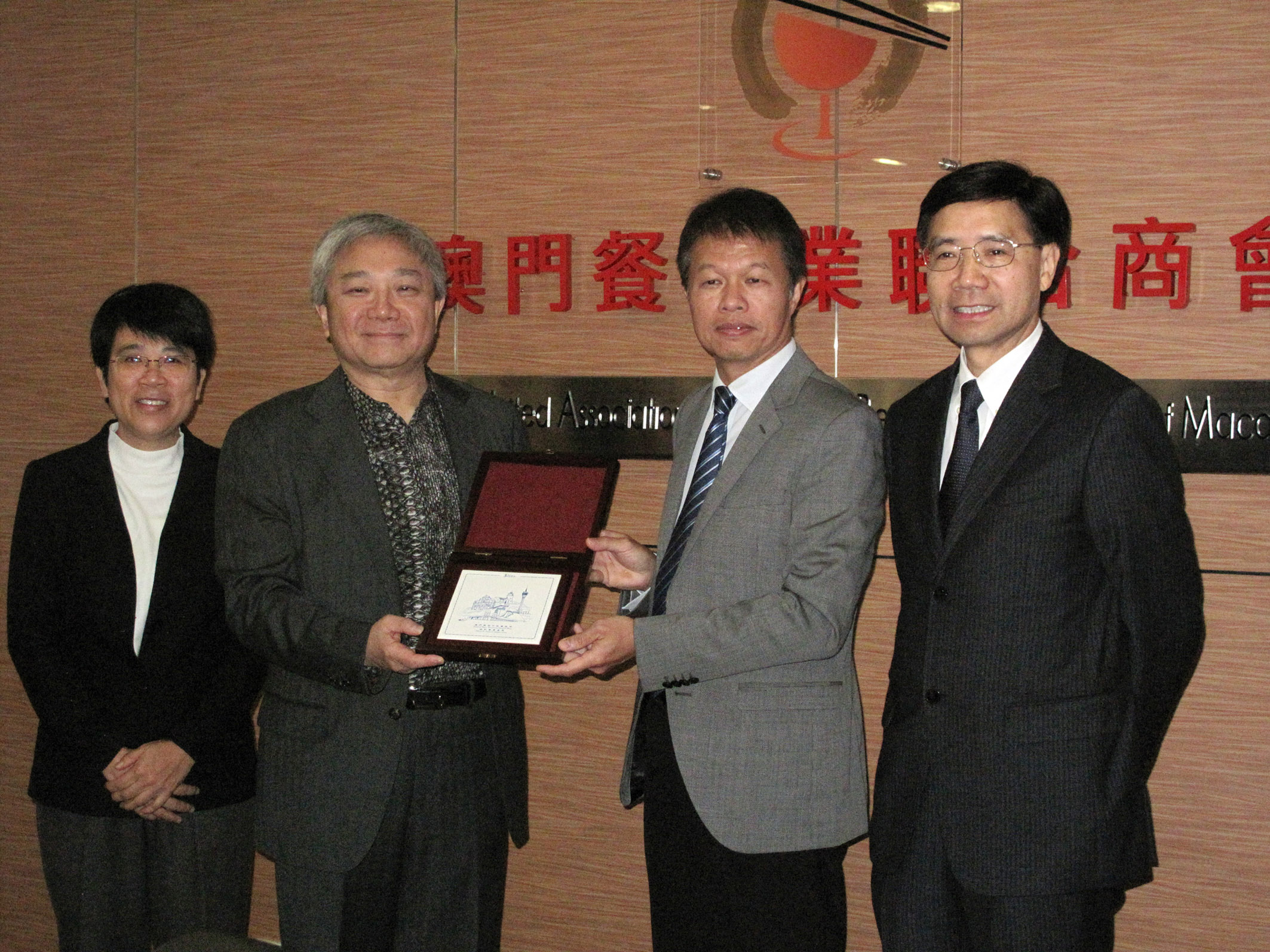 Um grupo de seis pessoas, liderado pelo director da Direcção dos Serviços de Estatística e Censos (DSEC), Dr. Ieong Meng Chao, visitou há dias a União das Associações dos Proprietários de Estabelecimentos de Restauração e Bebidas de Macau, a fim de recolher as suas opiniões sobre o Inquérito Mensal de Conjuntura à Restauração, que vai ser lançado em breve. O pessoal da DSEC foi recebido calorosamente pelo presidente da União, Sr. Chan Chak Mo, pelo presidente do Conselho Executivo, Sr. Lei U Weng e respectivos vice-presidentes, Sr. Lo Kam Kuan, Sr.ª Wong Leng Peng, Sr. Cheng Kuan e Sr. Cheong Chio Hang.