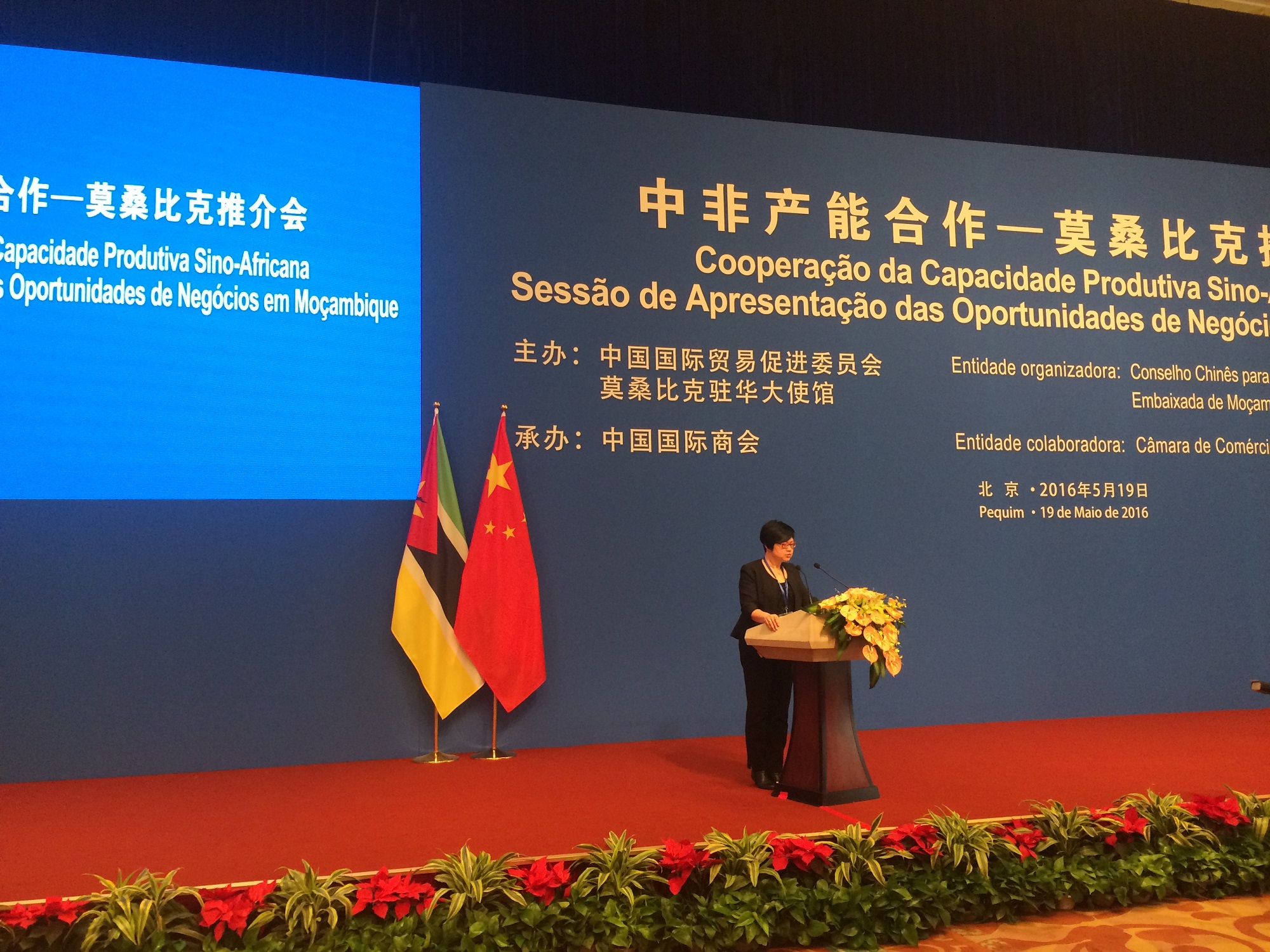 Por ocasião da visita de S. Exa. o Presidente da República de Moçambique, Dr. Filipe Jacinto Nyusi à China Continental, de 16 a 21 de Maio, com vista à promoção das relações económicas e comerciais entre a China e Moçambique, o Conselho para a Promoção do Comércio Internacional da China (CCPIT) e a Embaixada de Moçambique na China realizaram, em conjunto, o “China-Africa Industrial Capacity Cooperation Forum - Mozambique Business Opportunities” na Diaoyutai State Guest House em Pequim. Oficiais dos Governos da China e de Moçambique, assim como dirigentes das associações comerciais e representantes das empresas estiveram presentes no evento. Aproveitando esta oportunidade da visita à China Continental dos representantes de alto nível de Moçambique, a fim de promover Macau como Plataforma de Serviços para a Cooperação Comercial entre a China e os Países de Língua Portuguesa, o Instituto de Promoção do Comércio e do Investimento de Macau (IPIM) organizou uma delegação empresarial para participar no referido Fórum em Pequim.