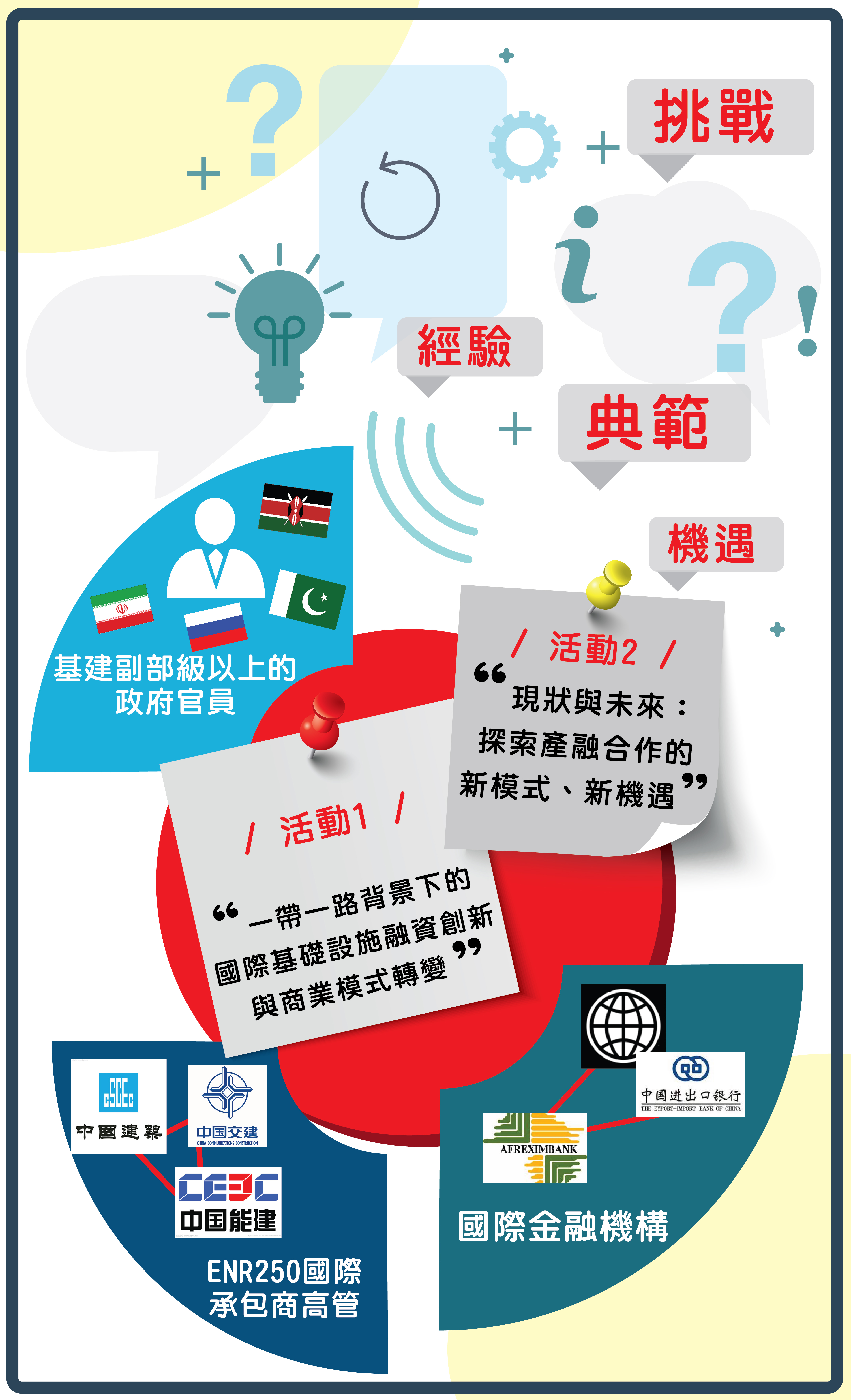 Os organizadores do IIICF convidaram, para participar nestes seminários, dirigentes governamentais da Rússia, Irão, Paquistão e Quénia, entre outros países. Estes serão acompanhados por representantes de várias instituições financeiras internacionais, nomeadamente do Banco Mundial, Banco de Exportações e Importações da China (China Exim Bank) e do Banco Africano de Exportações e Importações. Foram ainda convidadas a participar nestes seminários, representantes das administrações da China State Construction Engineering Corp., China Communications Construction Co. Ltd. e China Energy Engineering Group Co. Ltd., assim como de diversas outras empresas incluídas no ranking ENR dos 250 maiores grupos a nível mundial no sector da construção. Os organizadores do IIICF esperam que os participantes nestes dois seminários possam partilhar experiências e providenciar exemplos de novos modelos de cooperação internacional entre o sector industrial e financeiro, debatendo detalhadamente as respectivas oportunidades e desafios em causa.