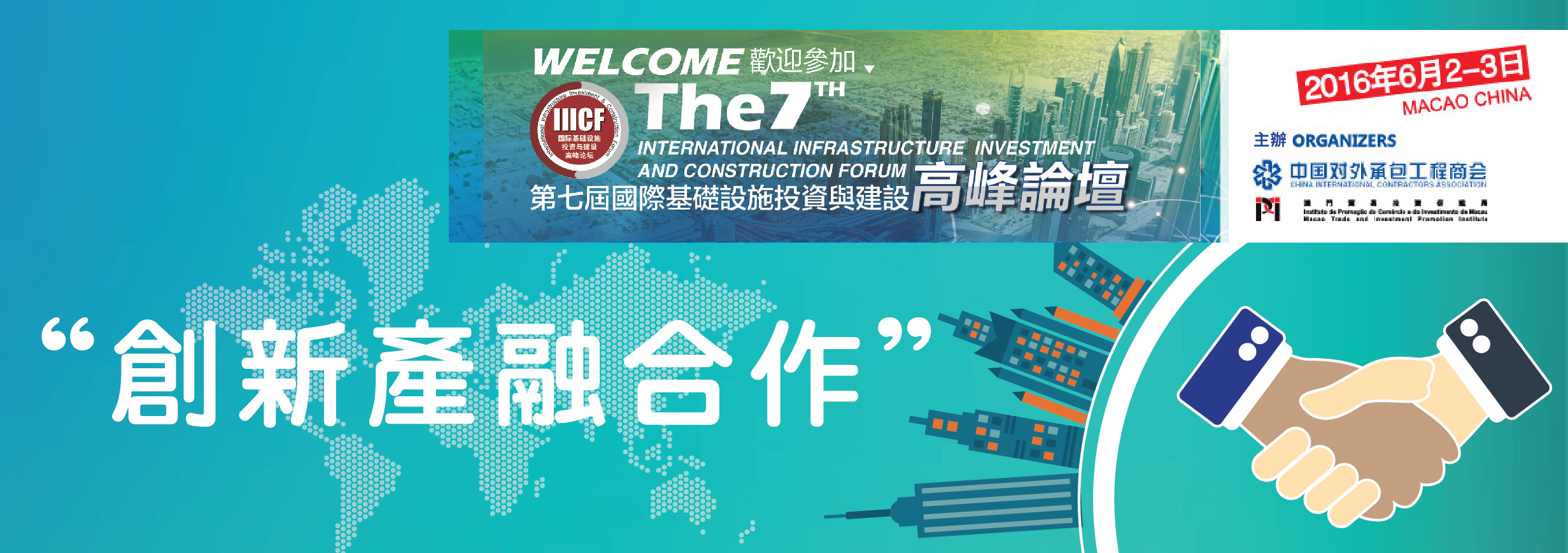 O 7.º Fórum Internacional sobre o Investimento e Construção de Infra-estruturas (IIICF, na sigla inglesa), organizado pela Associação de Construtores Civis Internacionais da China (CHINCA, na sigla inglesa) e pelo Instituto de Promoção do Comércio e do Investimento de Macau (IPIM), decorre nos dias 2 e 3 de Junho, no Venetian Macao-Resort-Hotel. No seguimento da realização, com sucesso, das seis edições anteriores deste evento, a edição de 2016 do IIICF visa servir como uma plataforma de intercâmbio, comunicação e cooperação entre empresários internacionais. A par disso, o evento pretende ainda reforço o conhecimento e confiança das empresas de construção da China, elevando a sua imagem a nível mundial e promover uma maior cooperação internacional no campo das infra-estruturas, geradora de benefícios mútuos para todos os envolvidos.