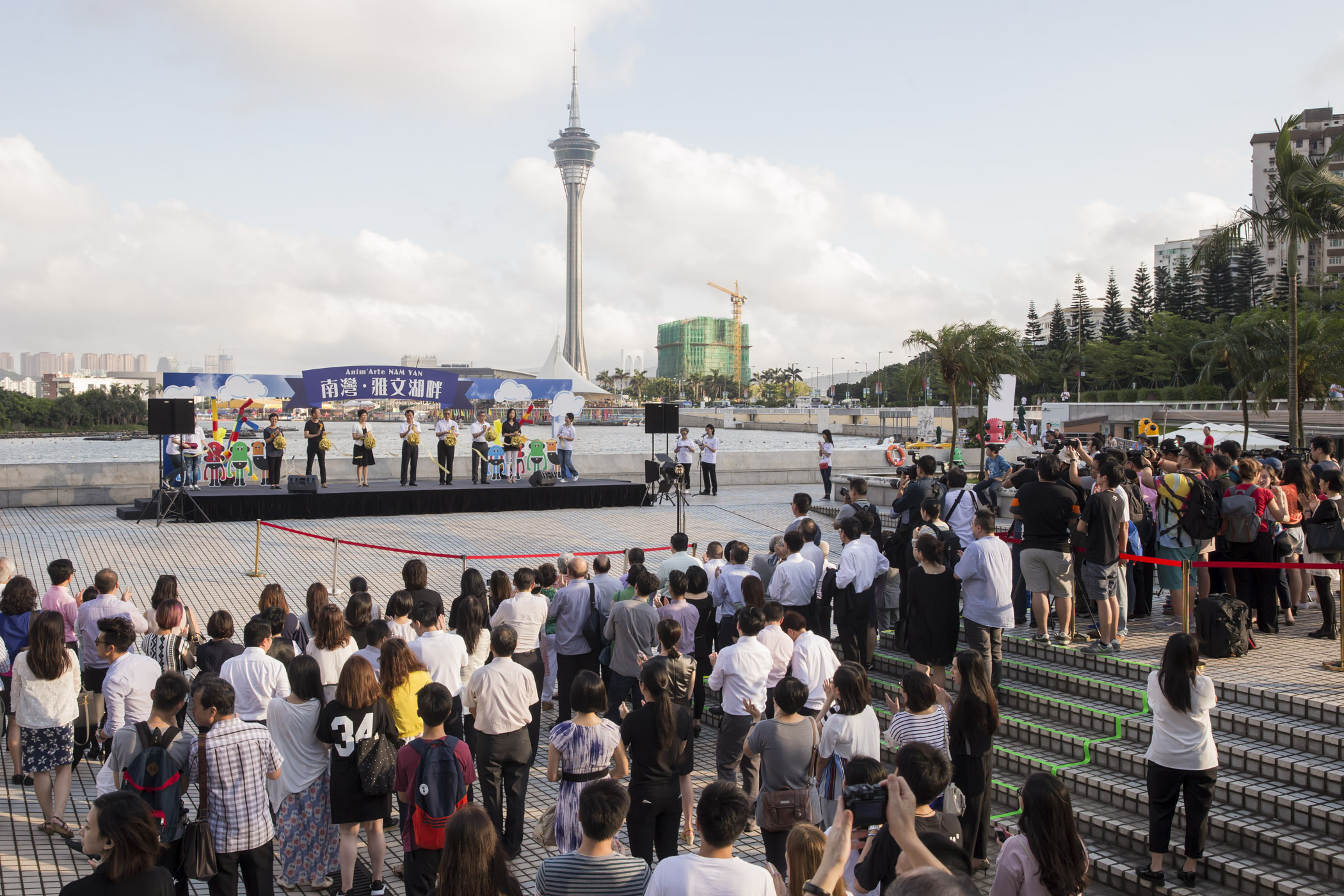Lançado em conjunto pelo Instituto Cultural (IC), pelo Instituto do Desporto (ID), pela Direcção dos Serviços de Turismo (DST) e pelo Instituto de Formação Turística (IFT), o “Anim'Arte NAM VAN” encontra-se diariamente aberto ao público a partir do dia 3 de Junho. A cerimónia de inauguração foi presidida pelo Secretário para os Assuntos Sociais e Cultura, Alexis Tam, a directora do Departamento de Cultura e Educação do Gabinete de Ligação do Governo Popular Central na RAEM, Xu Ting, o chefe do Gabinete do Secretário para os Assuntos Sociais e Cultura, Ip Peng Kin, o presidente do IC, Ung Vai Meng, o presidente do ID, Pun Weng Kun, a directora da DST, Maria Helena de Senna Fernandes, e a presidente do IFT, Fanny Vong. A cerimónia de inauguração contou também com a participação de vários convidados, incluindo o presidente do Conselho de Administração do Fundo das Indústrias Culturais, Leong Heng Teng, o vice-presidente do IC, Chan Peng Fai, os vice-presidentes do ID, Lau Cho Un e Lam Lin Kio, o subdirector da DST, Cheng Wai Tong, entre outros.